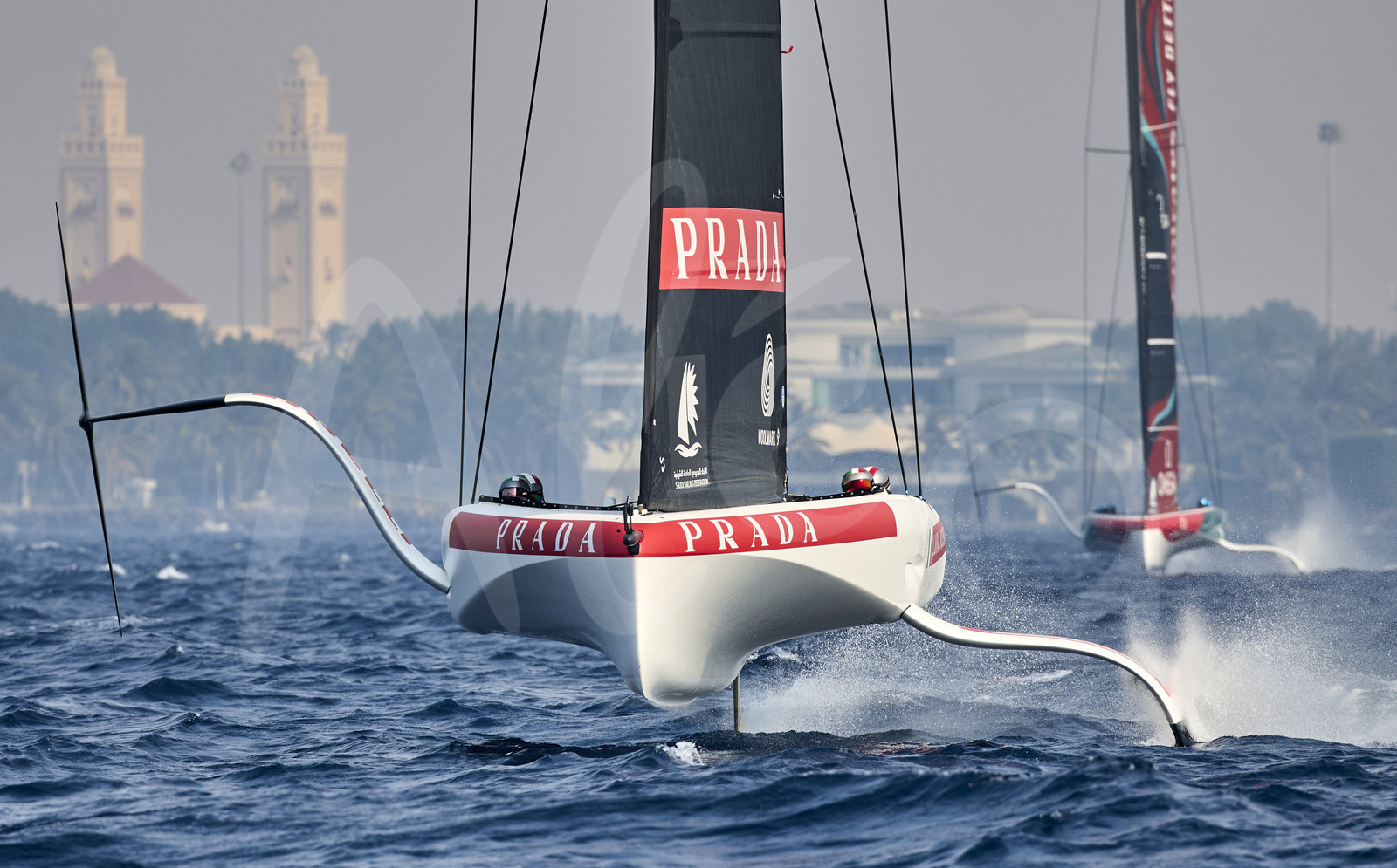 | Description | JEDDAH, SAUDI ARABIA - DECEMBER 01: AC 40 Luna Rossa Prada Pirelli Team is competing during the Preliminary Regatta held before the Louis Vuitton Cup, in Jeddah, Saudi Arabia, on December 1st, 2023. (photo by Carlo Borlenghi / Alea) |