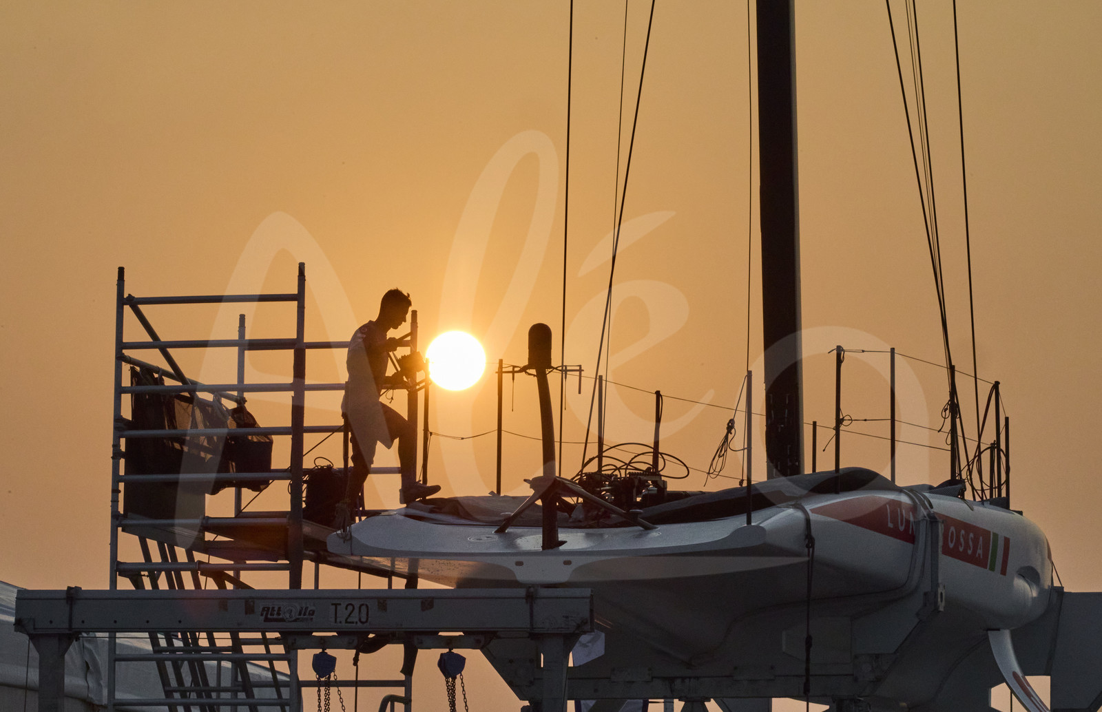 | Description | JEDDAH, SAUDI ARABIA - DECEMBER 01: AC 40 Luna Rossa Prada Pirelli team member is illustrated at dawn during the Preliminary Regatta held before the Louis Vuitton Cup, in Jeddah, Saudi Arabia, on December 1st, 2023. (photo by Carlo Borlenghi / Alea) |