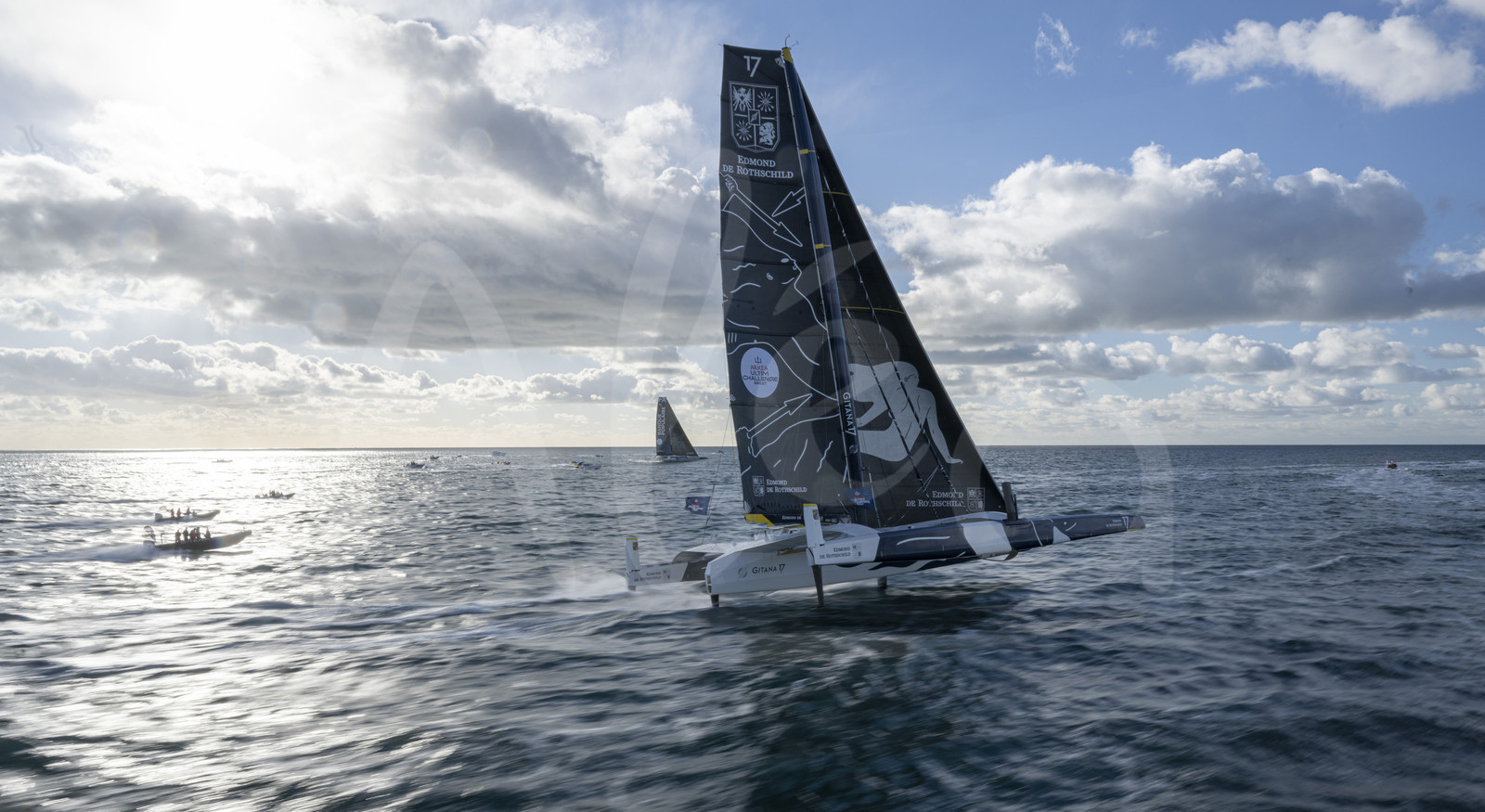 | Description | BREST, FRANCE - JANUARY 07 : Maxi Edmond de Rothschild is pictured during start of the Arkea Ultim Challenge sailing race in Brest, France, on January 07, 2024. (photo by Vincent Curutchet / Alea) |