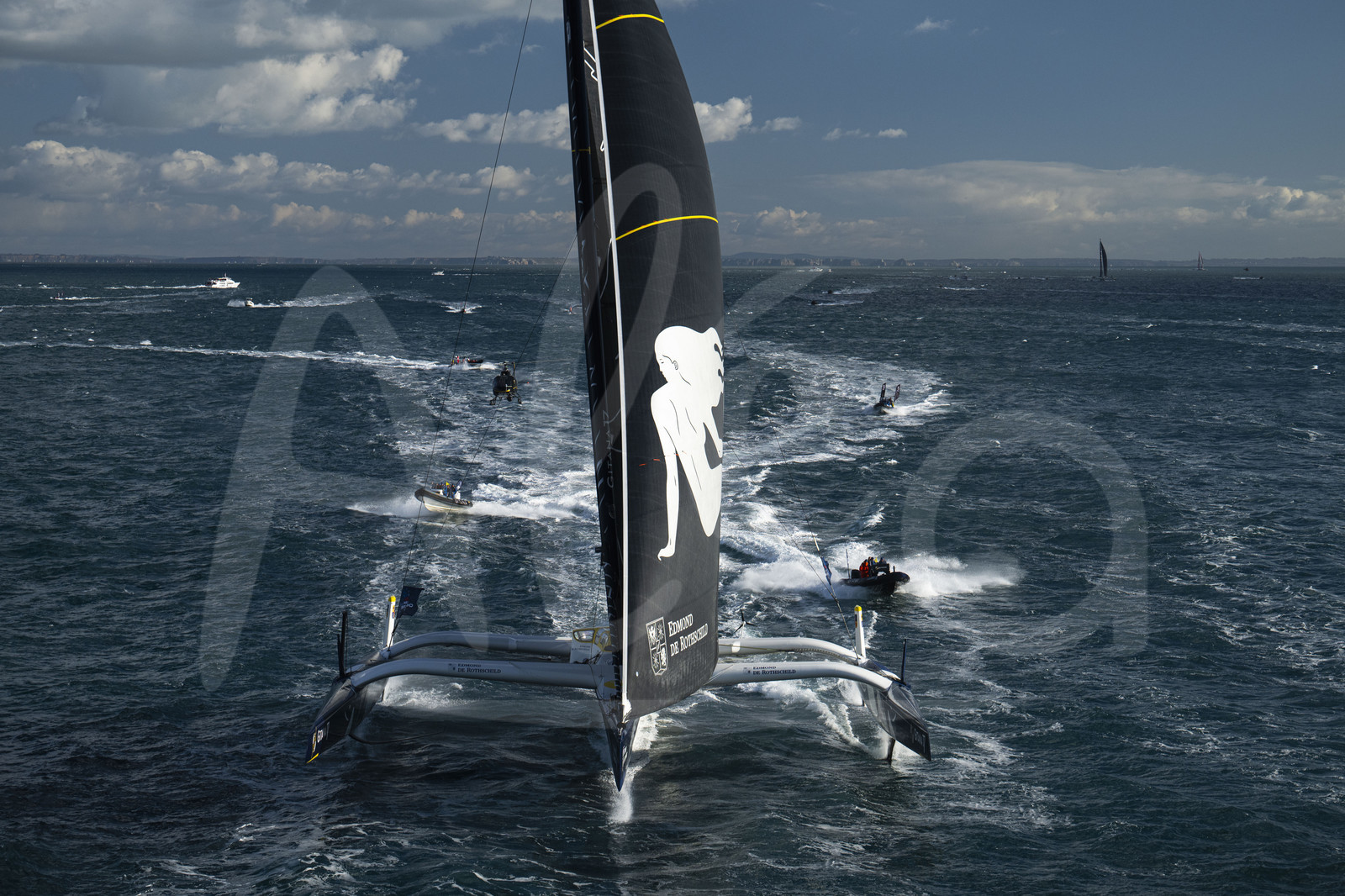 | Description | BREST, FRANCE - JANUARY 07 : Maxi Edmond de Rothschild is pictured during start of the Arkea Ultim Challenge sailing race in Brest, France, on January 07, 2024. (photo by Vincent Curutchet / Alea) |