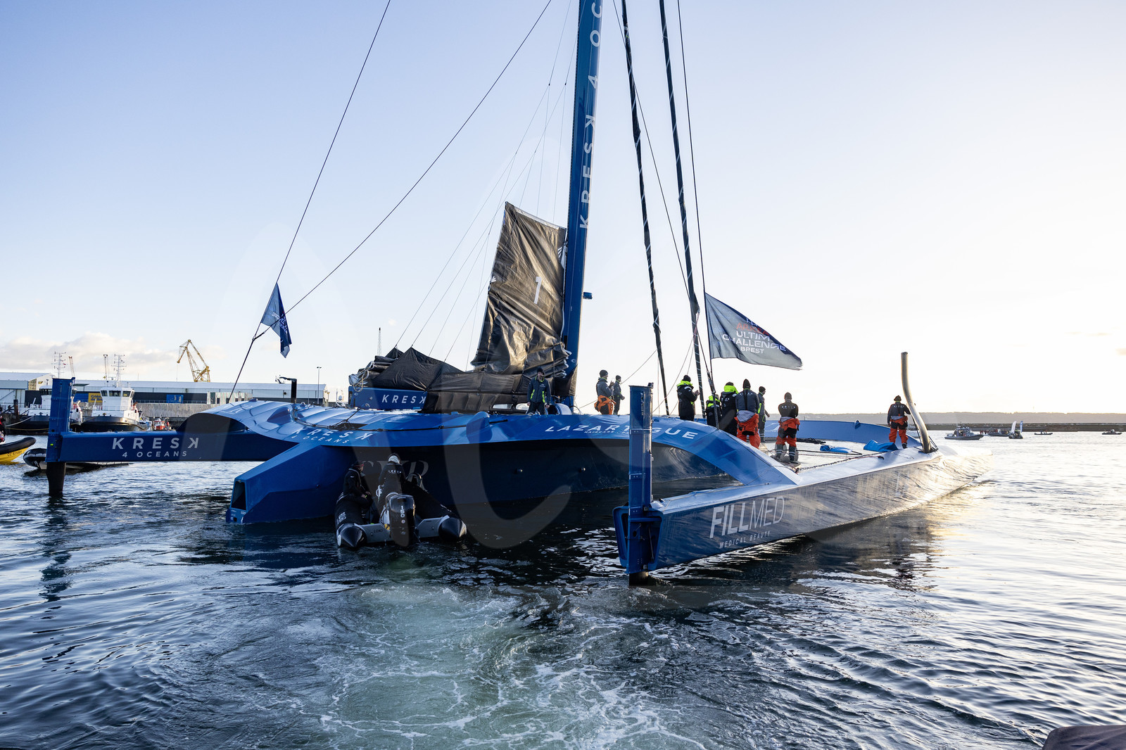 | Description | BREST, FRANCE - JANUARY 06 : Ultim boat SVR-Lazartigue is illustrated during start of the Arkea Ultim Challenge sailing race in Brest, France, on January 06, 2024. (photo by Jean-Marie Liot / Alea) |