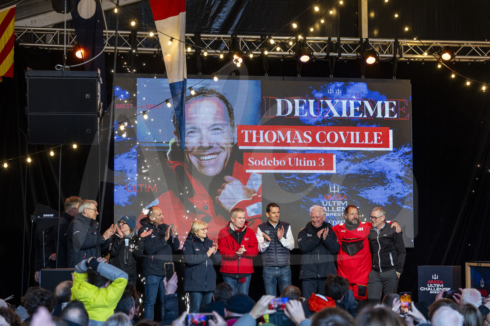 | Description | Thomas Coville, skipper de Sodebo Ultim, 2e de l’Arkea Ultim Challenge, Course autour du Monde en Solitaire, en 53 jours 1 heure 12 minutes et 40 secondes, à Brest le 29/02/2024, photo © Jean-Marie LIOT / Alea #### Thomas Coville, skipper of Sodebo Ultim, finishing second of the Arkea Ultim Challenge, Non stop Ultim solo handed race around the World, in second position in 53 days, 1 hour, 12 minutes et 40 secondes, off Brest on 2024, February 29, photo © Jean-Marie LIOT / Alea  |