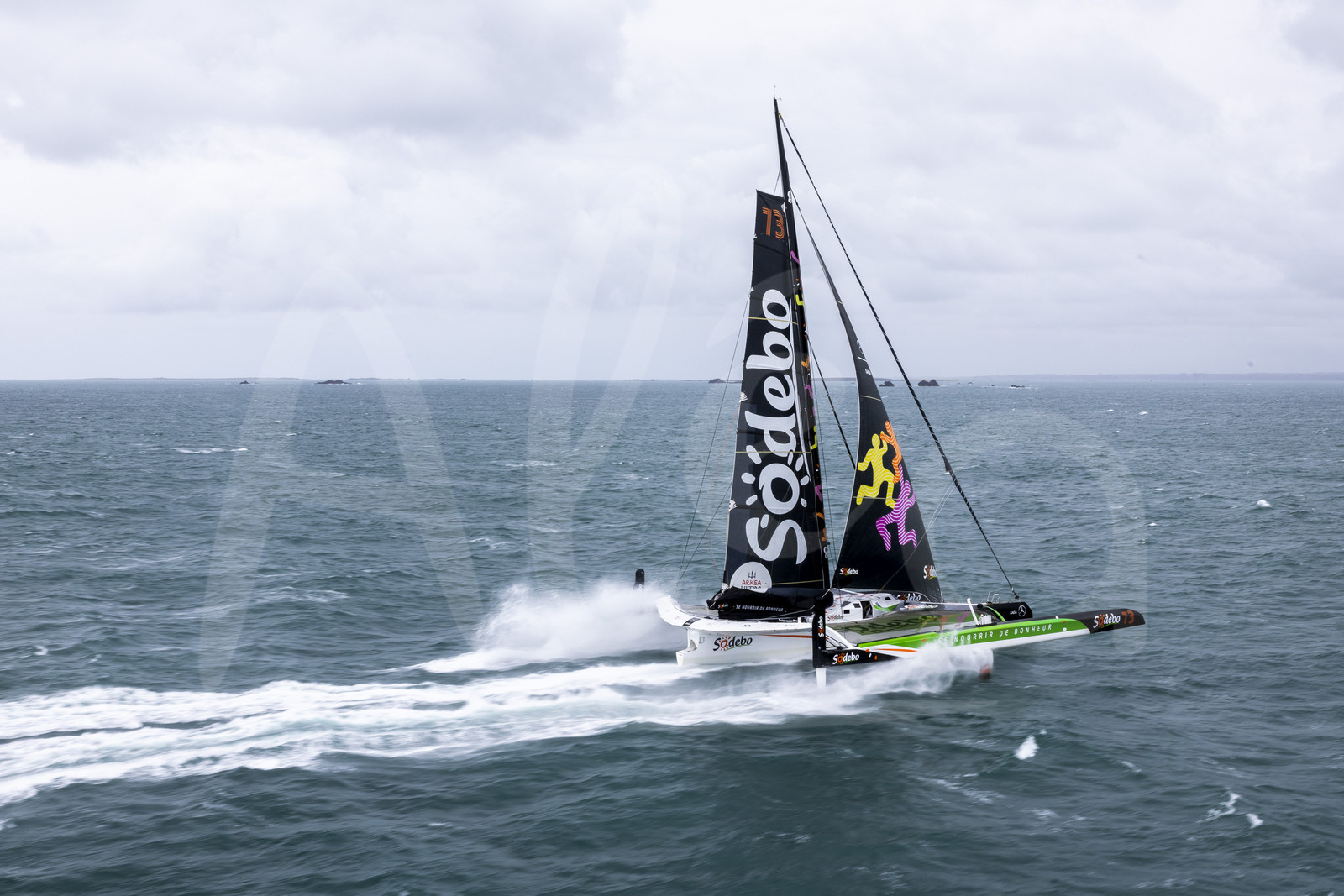| Description | Thomas Coville, skipper de Sodebo Ultim, 2e de l’Arkea Ultim Challenge, Course autour du Monde en Solitaire, en 53 jours 1 heure 12 minutes et 40 secondes, à Brest le 29/02/2024, photo © Jean-Marie LIOT / Alea #### Thomas Coville, skipper of Sodebo Ultim, finishing second of the Arkea Ultim Challenge, Non stop Ultim solo handed race around the World, in second position in 53 days, 1 hour, 12 minutes et 40 secondes, off Brest on 2024, February 29, photo © Jean-Marie LIOT / Alea  |