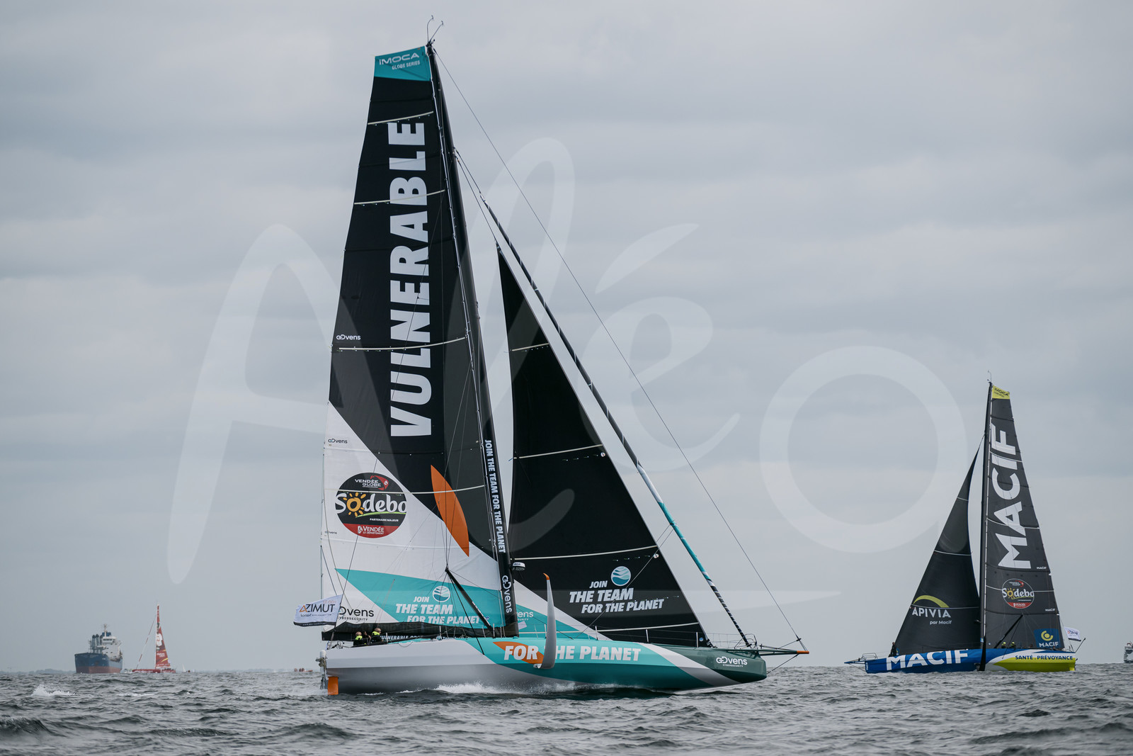 | Description | LORIENT, FRANCE - SEPTEMBER 11, 2024 : VULNERABLE skipper Sam Goodchild (GBR) and MACIF Santé Prévoyance skipper Charlie Dalin (FRA) are photographed sailing with guests during the Runs of the Defi Azimut, on September 11, 2024 in Lorient, France - (Photo by Olivier Blanchet / Alea) |