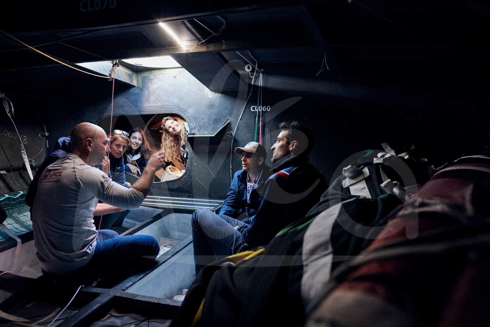 | Description | LES SABLES D'OLONNE, FRANCE - OCTOBER 23, 2024: Olympic sailing athletes Sarah Steyaert, bronze medal, Hélène Noesmoen, Erwan Fisher and Clement Péquin, Lou Berthomieu and Tim Mourniac, are visiting Groupe APICIL skipper Damien Seguin (FRA) at pontoons of the Vendee Globe, on October 23, 2024 in Les Sables d'Olonne, France - (Photo by Anne Beauge / Alea) |