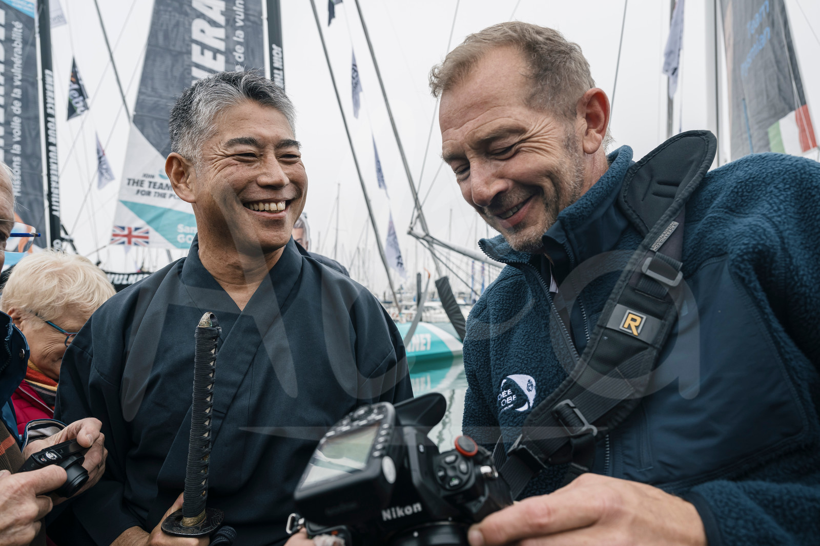 | Description | LES SABLES D'OLONNE, FRANCE - OCTOBER 6, 2024: DMG MORI Global One skipper Kojiro Shiraishi (JAP) poses with spectators on the pontoon during prestart of the Vendee Globe, on 6 November, 2024 in Les Sables d'Olonne, France. (Photo by Olivier Blanchet / Alea) |