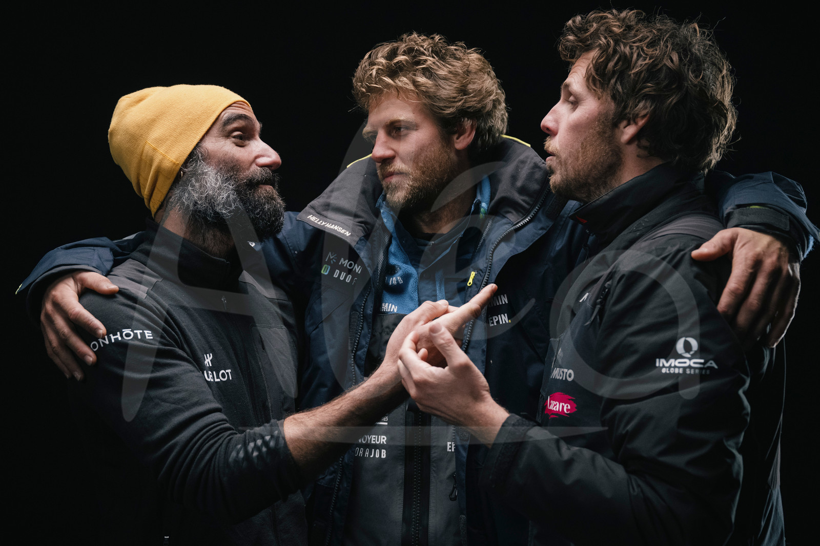 | Description | LES SABLES D’OLONNE, FRANCE - FEBRUARY 03, 2025 : Monnoyeur - DUO for a JOB skipper Benjamin Ferré (FRA), Lazare skipper Tanguy Le Turquais (FRA) and Hublot skipper Alan Roura (SUI) are photographed in studio during arrivals of the Vendee Globe, on February 03, 2025 in Les Sables d'Olonne, France - (Photo by Vincent Curutchet / Alea) |