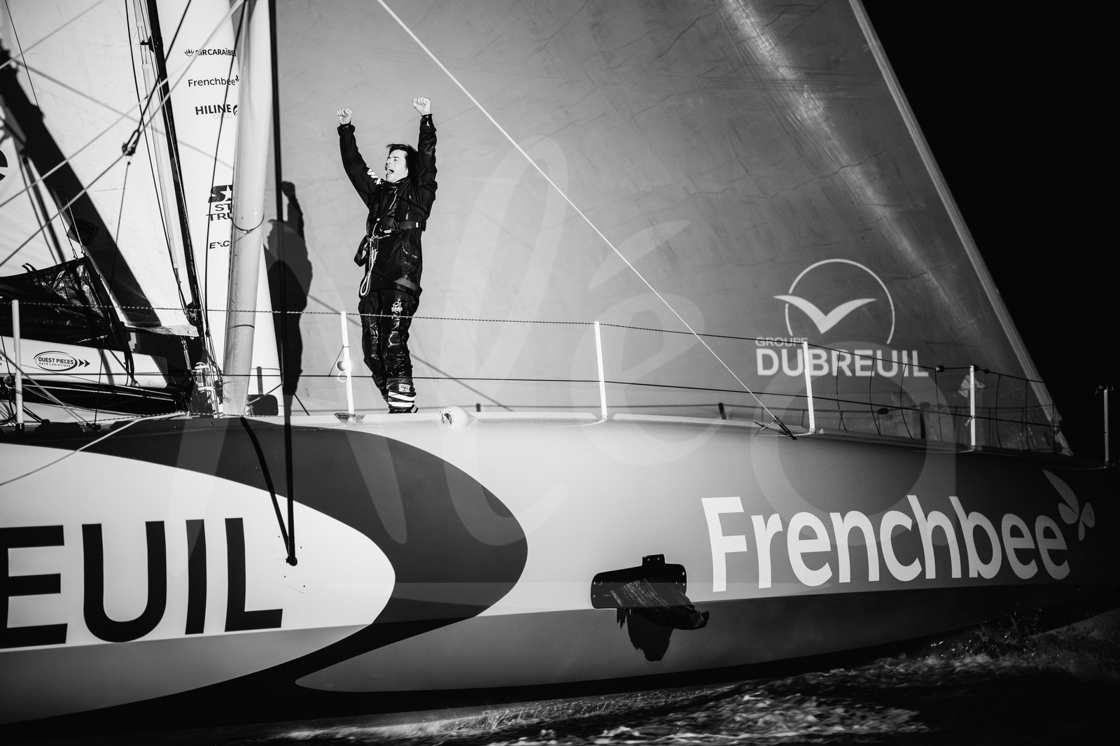 | Description | LES SABLES D'OLONNE, FRANCE - JANUARY 17, 2025 : Groupe Dubreuil skipper Sébastien Simon (FRA) is photographed taking 3rd place in the Vendee Globe, on January 17, 2025 in Les Sables d'Olonne, France - (Photo by Jean-Louis Carli / Alea) |