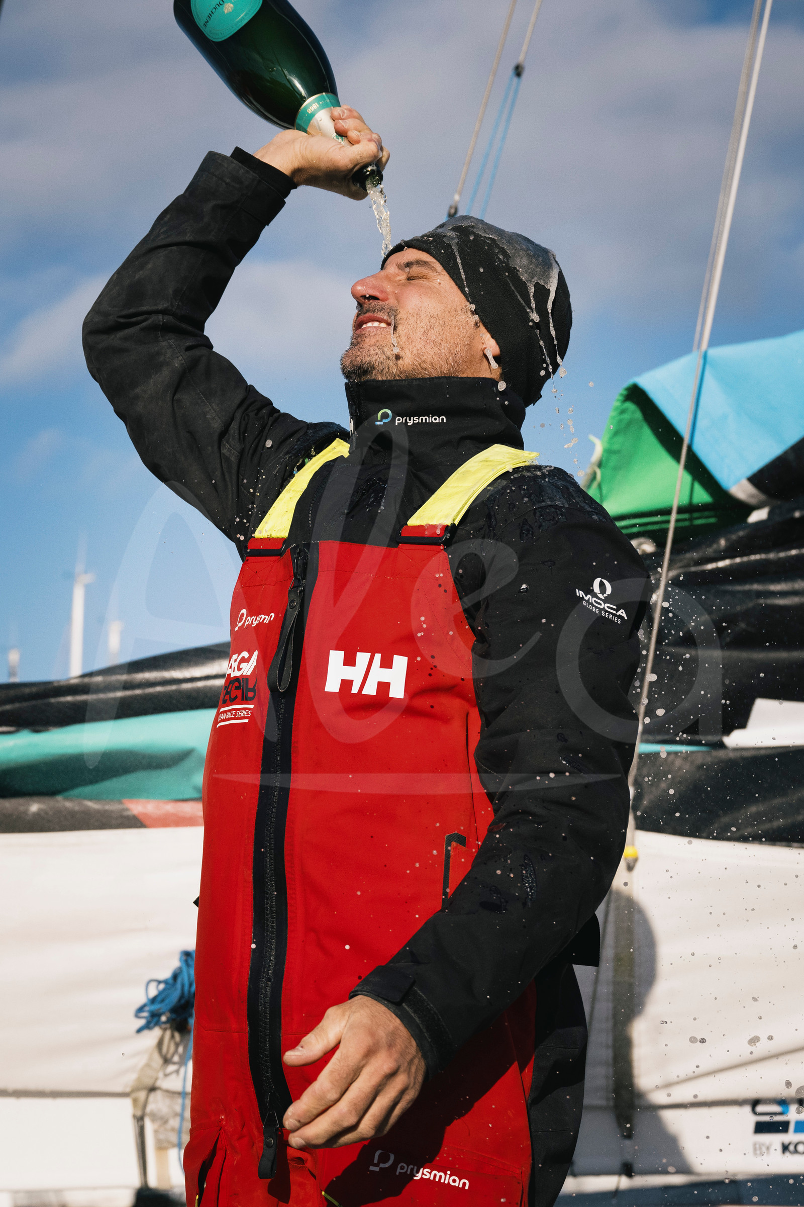 | Description | LES SABLES D’OLONNE, FRANCE - FEBRUARY 04, 2025 : Prysmian skipper Giancarlo Pedote (ITA) is celebrating with champagne after taking 22nd place in the Vendee Globe, on February 04, 2025 in Les Sables d'Olonne, France - (Photo by Vincent Curutchet / Alea) |