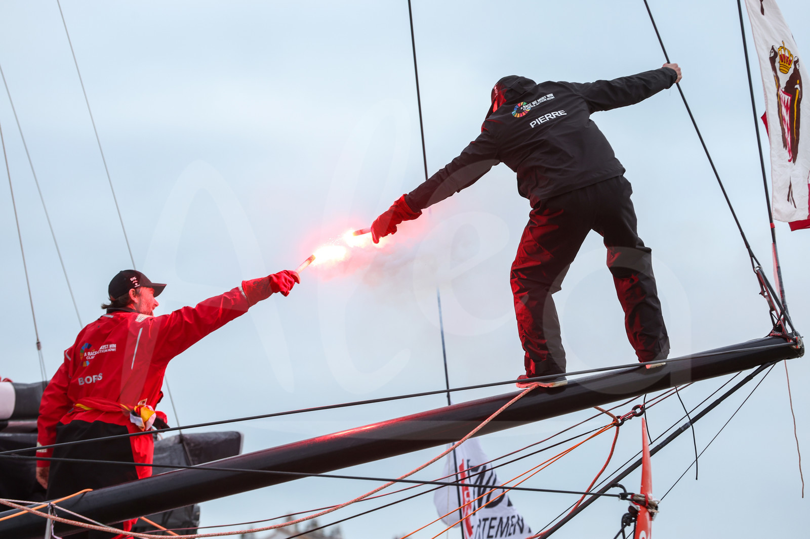 | Description | LES SABLES D'OLONNE, FRANCE - JANUARY 30, 2025 : Malizia - Seaexplorer skipper Boris Herrmann (GER) is celebrating with Pierre Casiraghi after taking 12th place in the Vendee Globe, on January 30, 2025 in Les Sables d'Olonne, France - (Photo by LloydImages / Alea) |