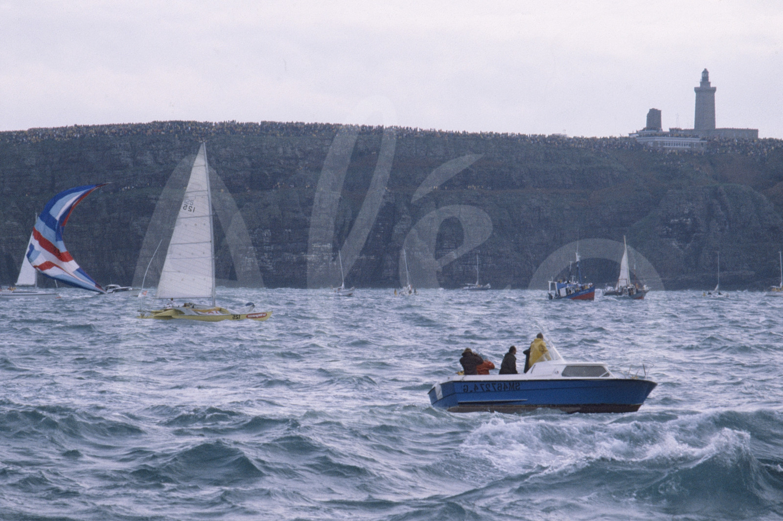 | Description | Illustration des bateaux et du public au Cap Fréhel pendant le départ de la Route du Rhum, à Saint-Malo, Bretagne, le 7 Novembre 1982 - Photo Bernard Rubinstein / ALEA |