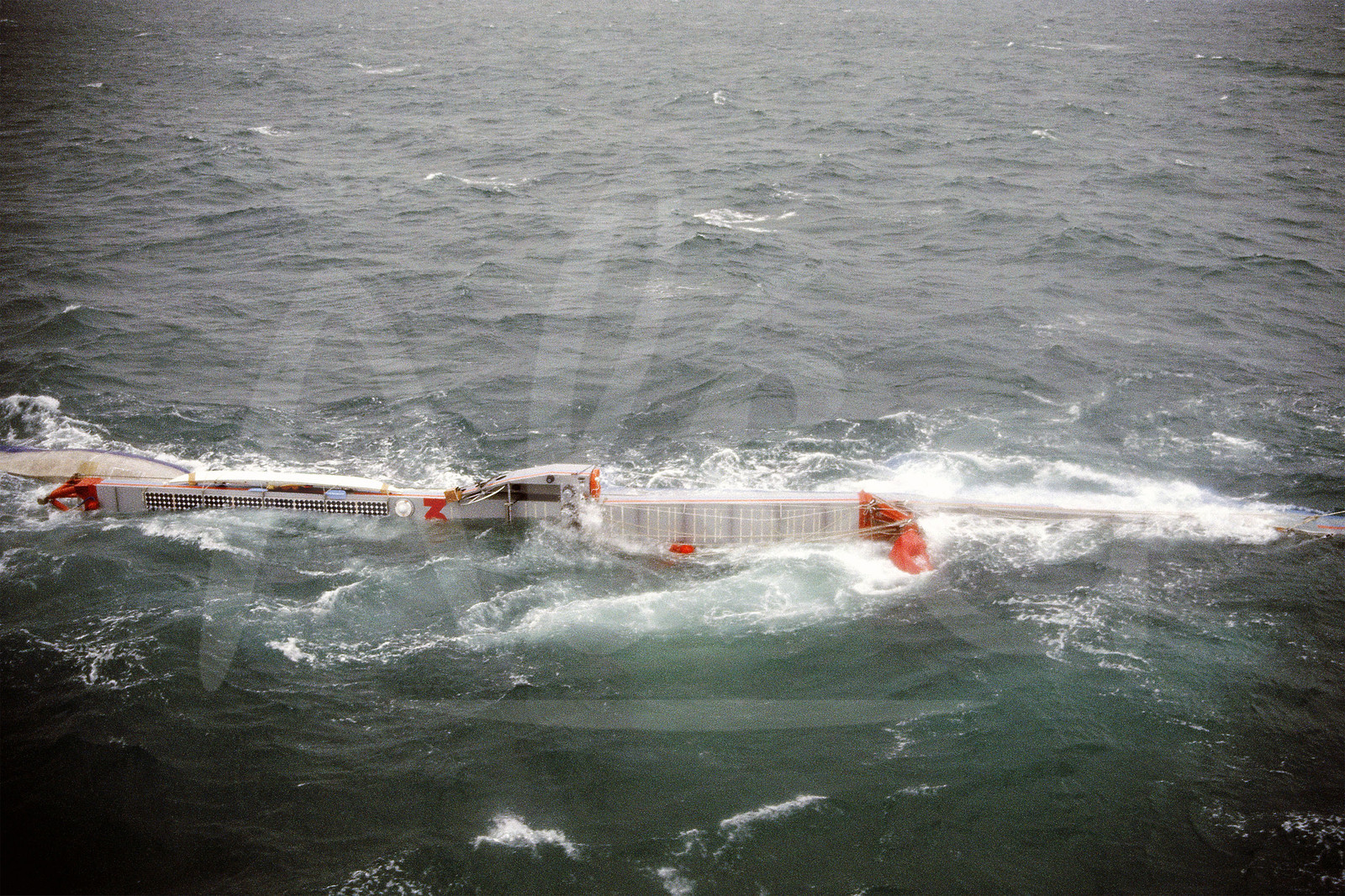 | Description | SAILING - TRANSATLANTIC RACE - ROUTE DU RHUM HISTORY - SAINT MALO (FRA) START - PHOTO : Bernard Rubinstein / ALEA ROUTE DU RHUM 1982 - PRAO PACIFIC ROSIERES / SKIPPER : GUY DELAGE (FRA) - CAPSIZED FEW SECONDS BEFORE THE START . |