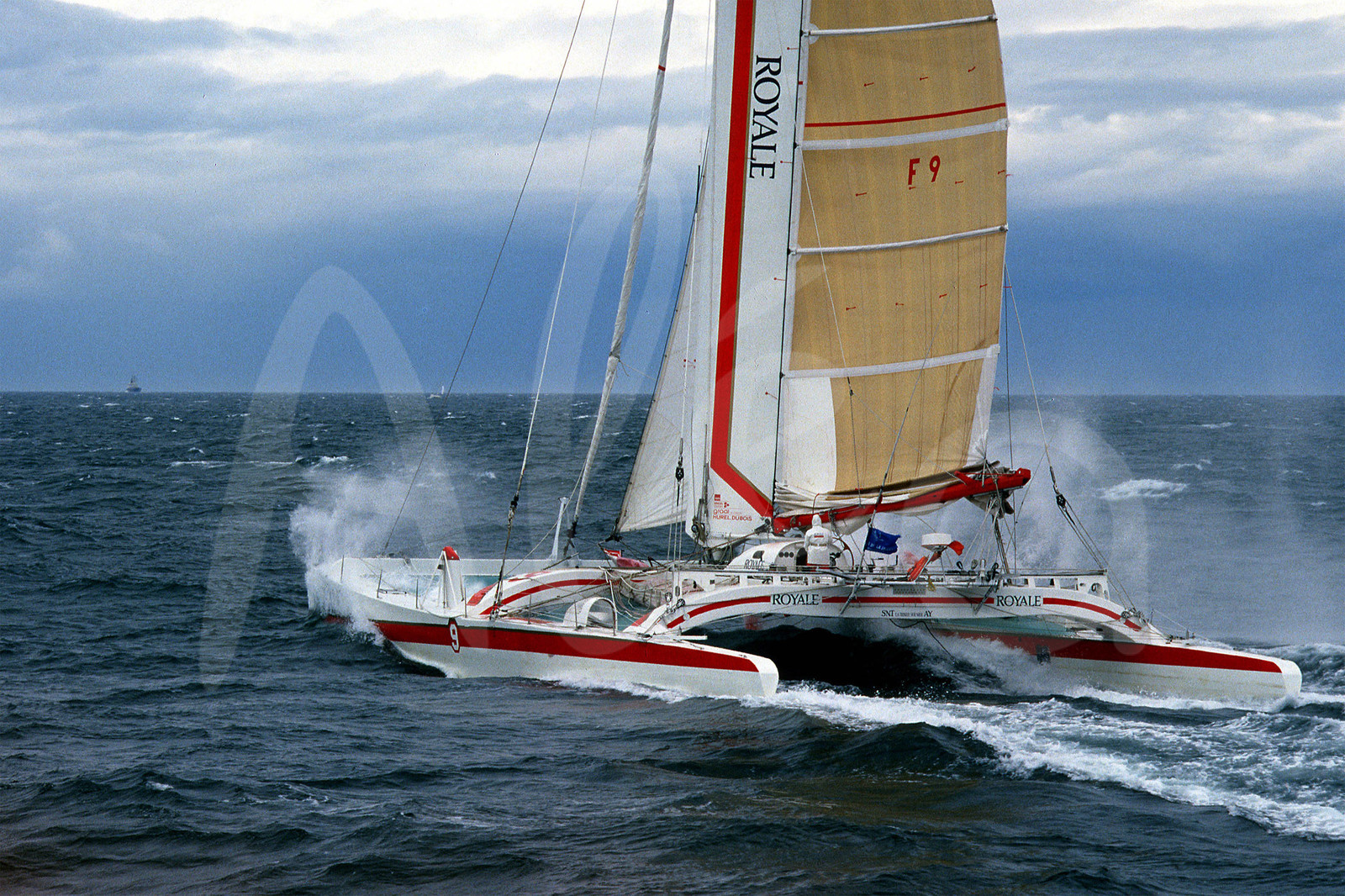 | Description | SAILING - MULTIHULLS HISTORY - ROUTE DU RHUM 1986 START - SAINT MALO (FRA) - 11/1986 - PHOTO : BERNARD RUBINSTEIN / ALEA CATAMARAN ROYALE / SKIPPER : LOIC CARADEC (FRA) - WILL DISAPPEAR ON SEA FEW DAYS AFTER |