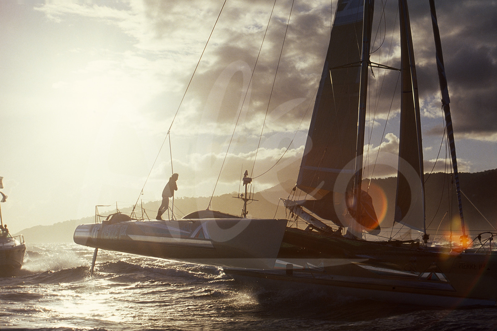 | Description | Vainqueur, Skipper Florence Arthaud, trimaran Pierre 1er, à l'arrivée de la Route du Rhum, à Pointe A Pitre, Guadeloupe, le 18 Novembre 1990 - Photo Bernard Rubinstein / ALEA |