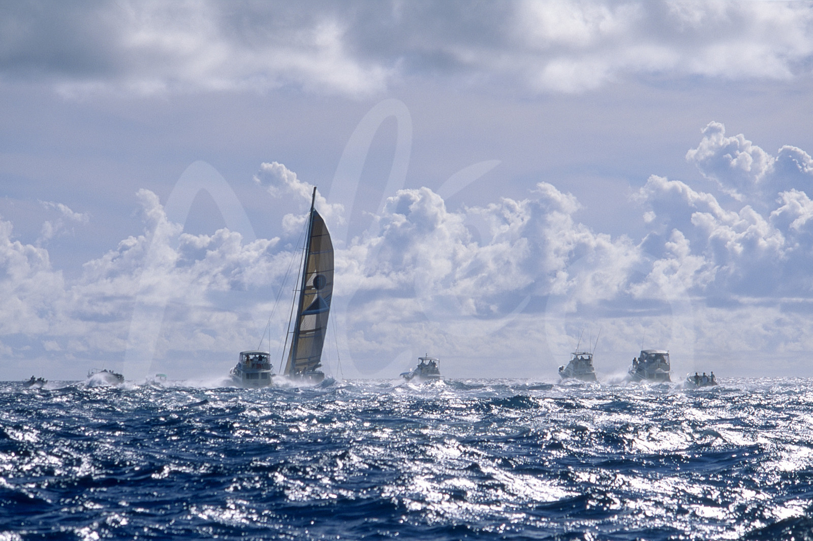 | Description | Vainqueur, Skipper Florence Arthaud, trimaran Pierre 1er, à l'arrivée de la Route du Rhum, à Pointe A Pitre, Guadeloupe, le 18 Novembre 1990 - Photo Bernard Rubinstein / ALEA |