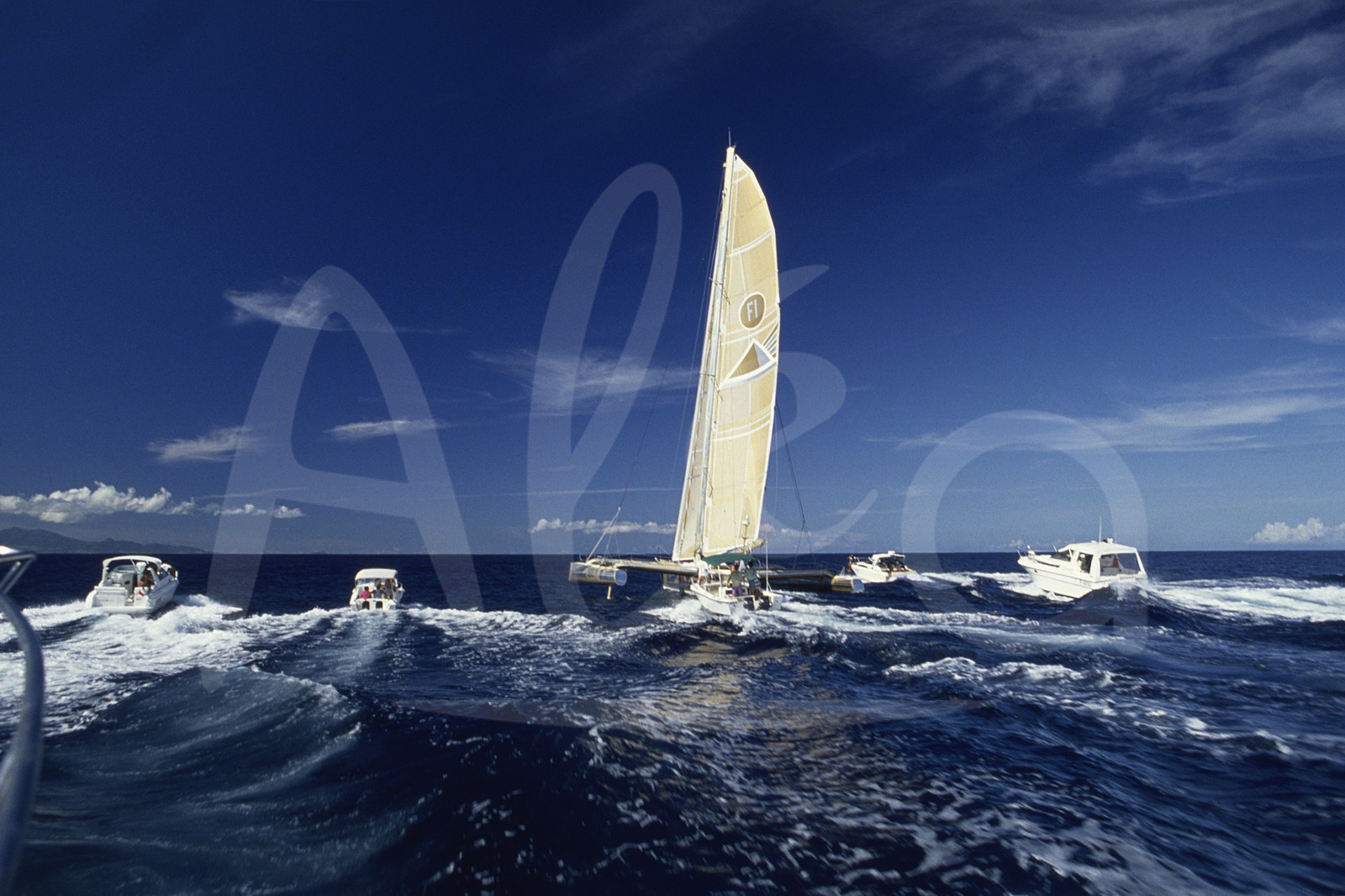| Description | Vainqueur, Skipper Florence Arthaud, trimaran Pierre 1er, à l'arrivée de la Route du Rhum, à Pointe A Pitre, Guadeloupe, le 18 Novembre 1990 - Photo Bernard Rubinstein / ALEA |