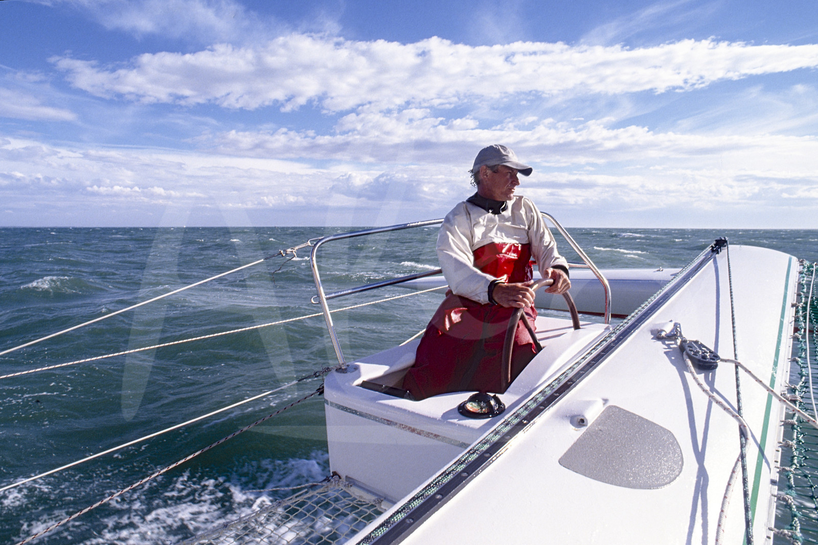 | Description | Skipper Philippe Poupon, Fleury Michon, à l'entrainement avant le départ de la Route du Rhum, à St-Malo, France, le 17 Octobre 1990 - Photo François Mousis / ALEA |
