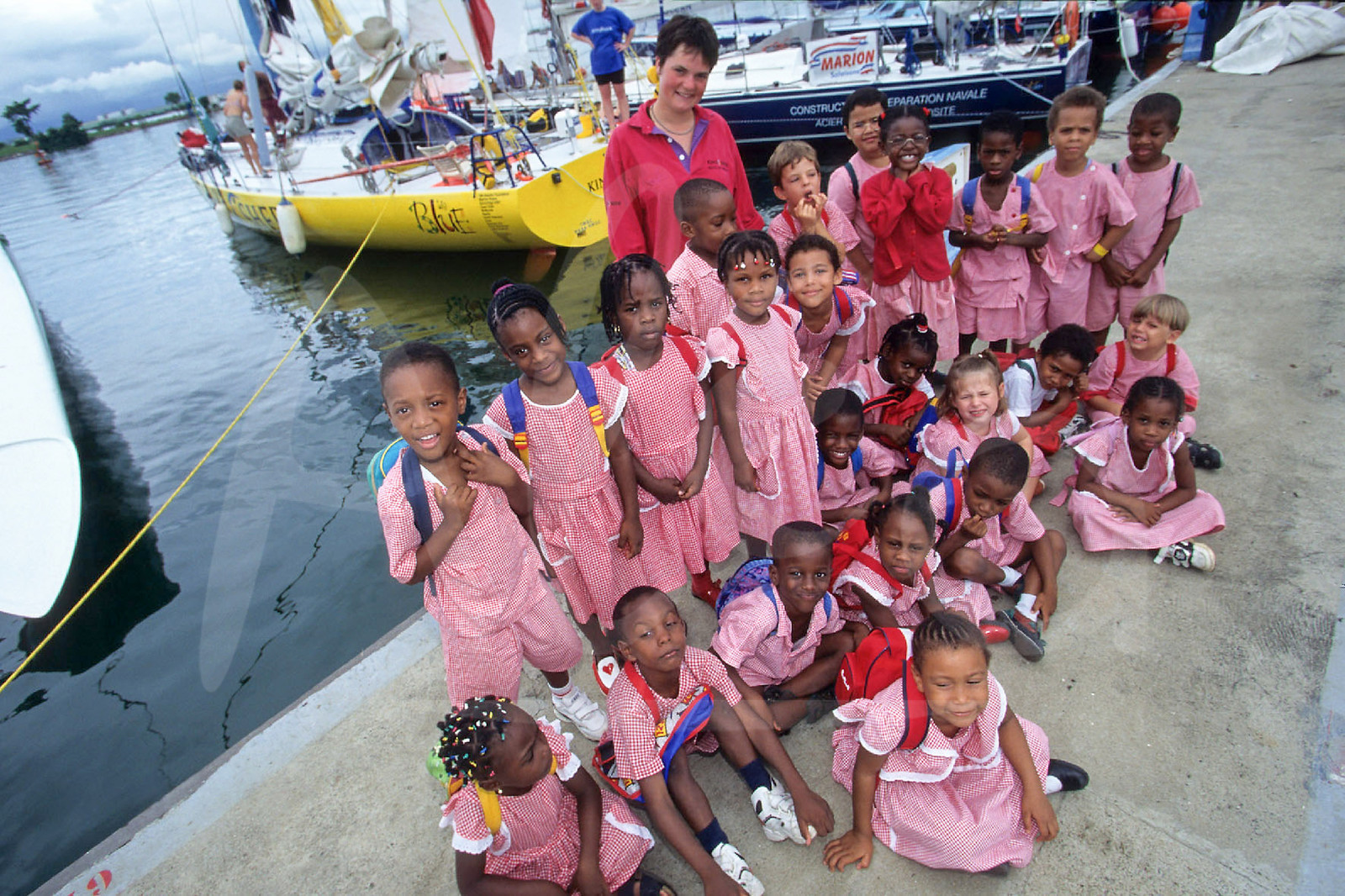 | Description | Ellen Macarthur après sa victoire dans la Route du Rhum 1998, catégorie 50 pieds, rencontre une classe sur les pontons de Pointe à Pitre Guadeloupe, Photo : Jean-Marie Liot / Alea.###.Ellen Macarthur after his victory of la Route du Rhum 1998, in 50 feet ranking, Photo : Jean-Marie Liot / Alea. |