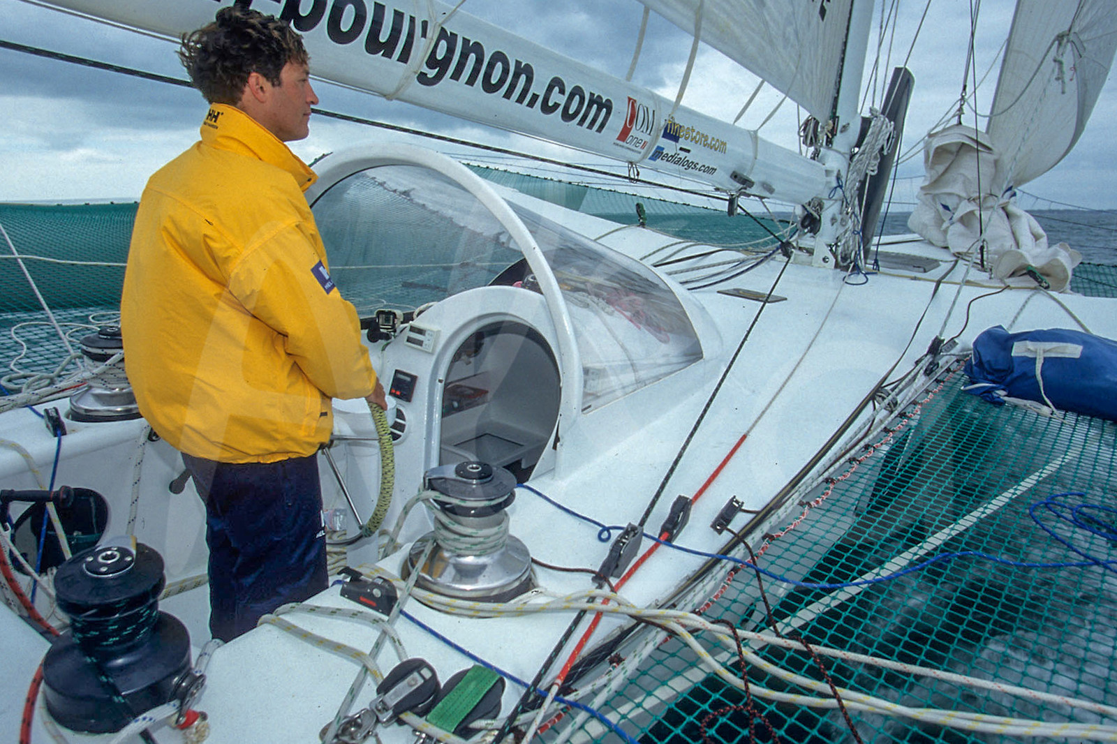 | Description | Yvan Bourgnon à l'entrainement à bord de son ORMA YPREMA avant le départ de la Route du Rhum 1998, baie de Quiberon, octobre 1998, Photo : Jean-Marie Liot / Alea.###.Yvan Bourgnon training onboard his ORMA YPREMA before the start of la Route du Rhum 1998, baie de Quiberon, october 1998, Photo : Jean-Marie Liot / Alea |