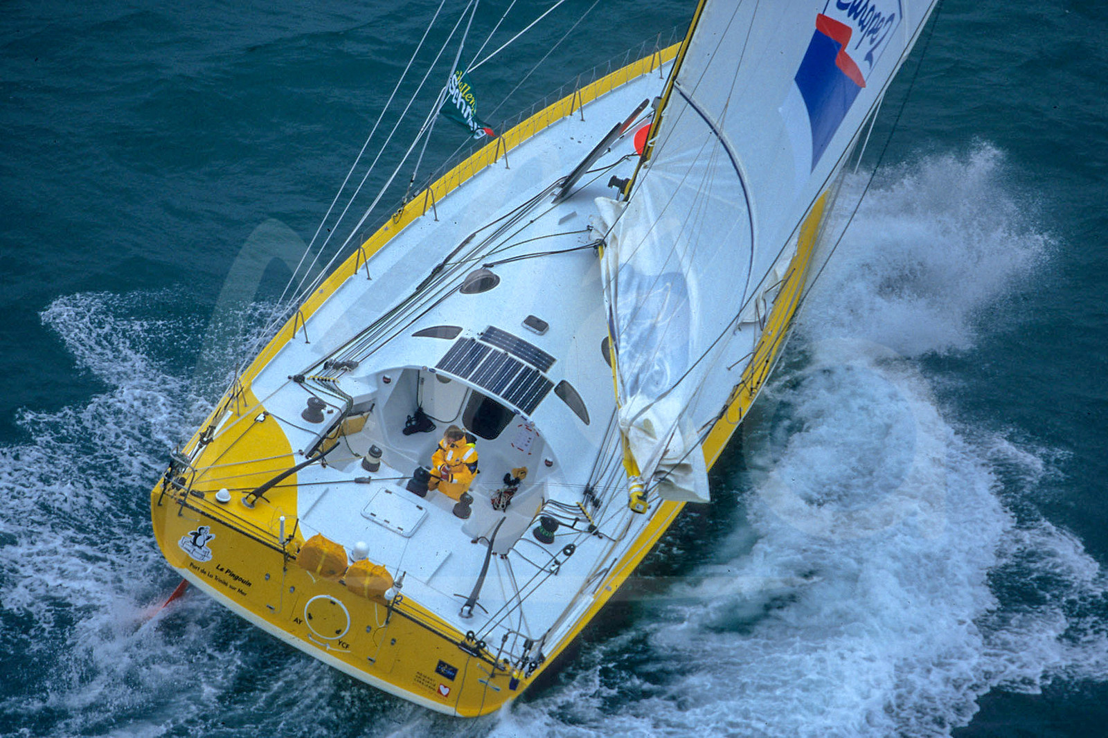 | Description | IMOCA Whirlpool, skipper Catherine Chabaud, départ de la Route du Rhum 1998, Photo : Jean-Marie Liot / Alea.###.IMOCA Whirlpool, skipper Catherine Chabaud, during la Route du Rhum 1998 start in Saint-Malo, Photo : Jean-Marie Liot / Alea. |