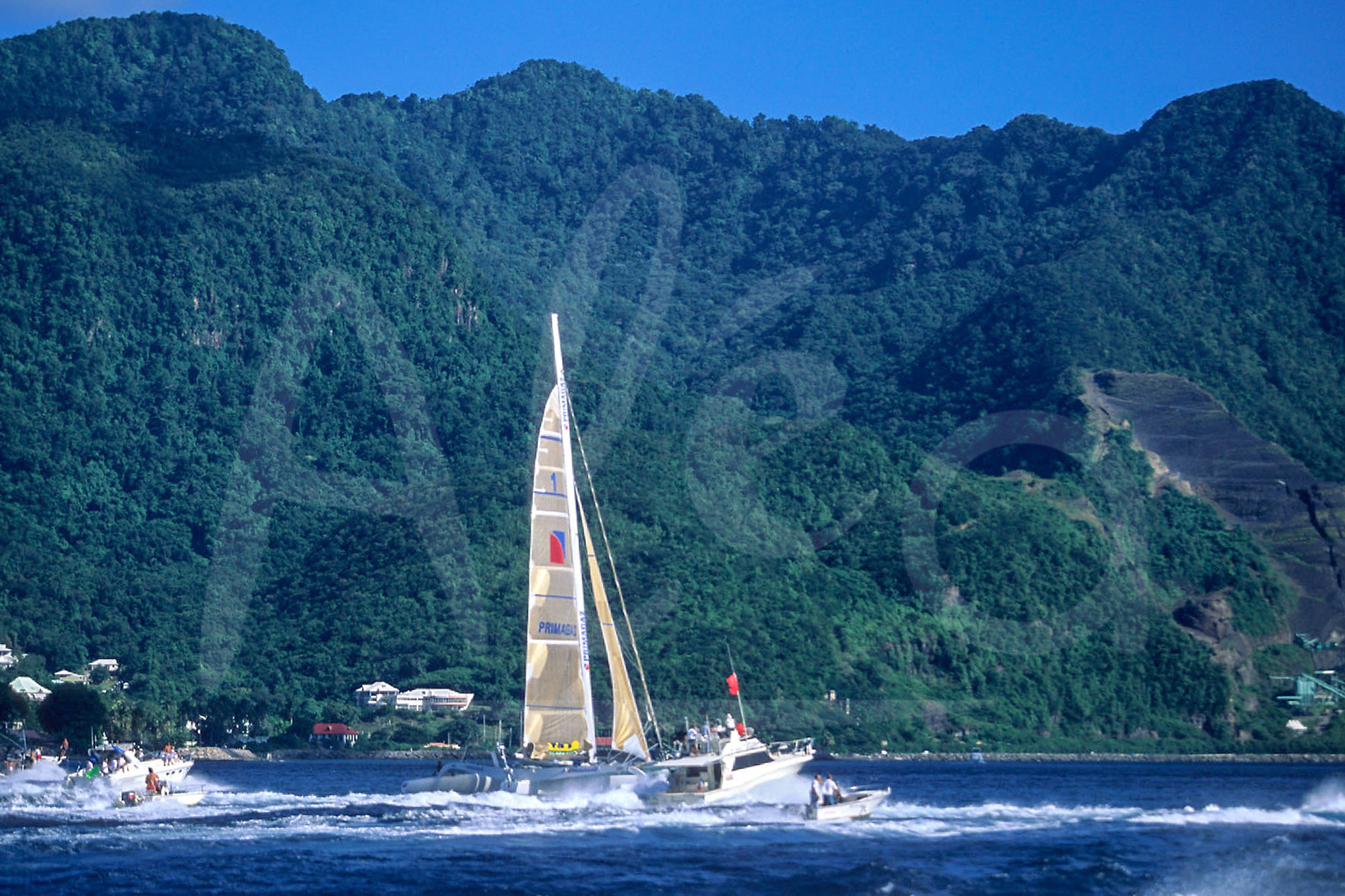 | Description | Arrivée de Laurent Bourgon, à Pointe à Pitre, Guadeloupe, vainqueur en ORMA (multicoque de 60 pieds, ) de la Route du Rhum 1998, Photo : Jean-Marie Liot / Alea.###.Arrival Laurent Bourgon, in Pointe à Pitre, Guadeloupe, winner in ORMA ranking (60 feet multihull) of la Route du Rhum 1998, Photo : Jean-Marie Liot / Alea. |