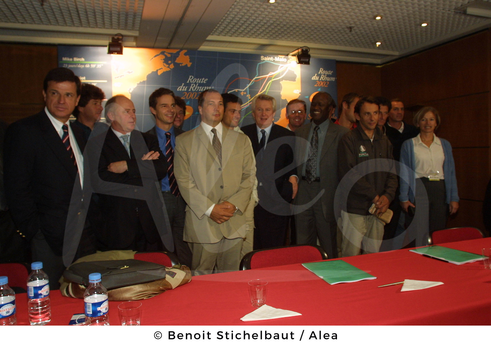 | Description | SAILING - PRESS CONFERENCE ROUTE DU RHUM 2002 - 30/11/2001 - PHOTO: BENOIT STICHELBAUT / ALEA.RENE COUANAU (ST-MALO MAYOR) / LUCIEN GUECHOT (PROMOVOILE) / LUC ADEMAR (GUADELOUPE) / LUCIEN BOYER (HAVAS ADVERTISING SPORTS) AND NAVIGATORS |