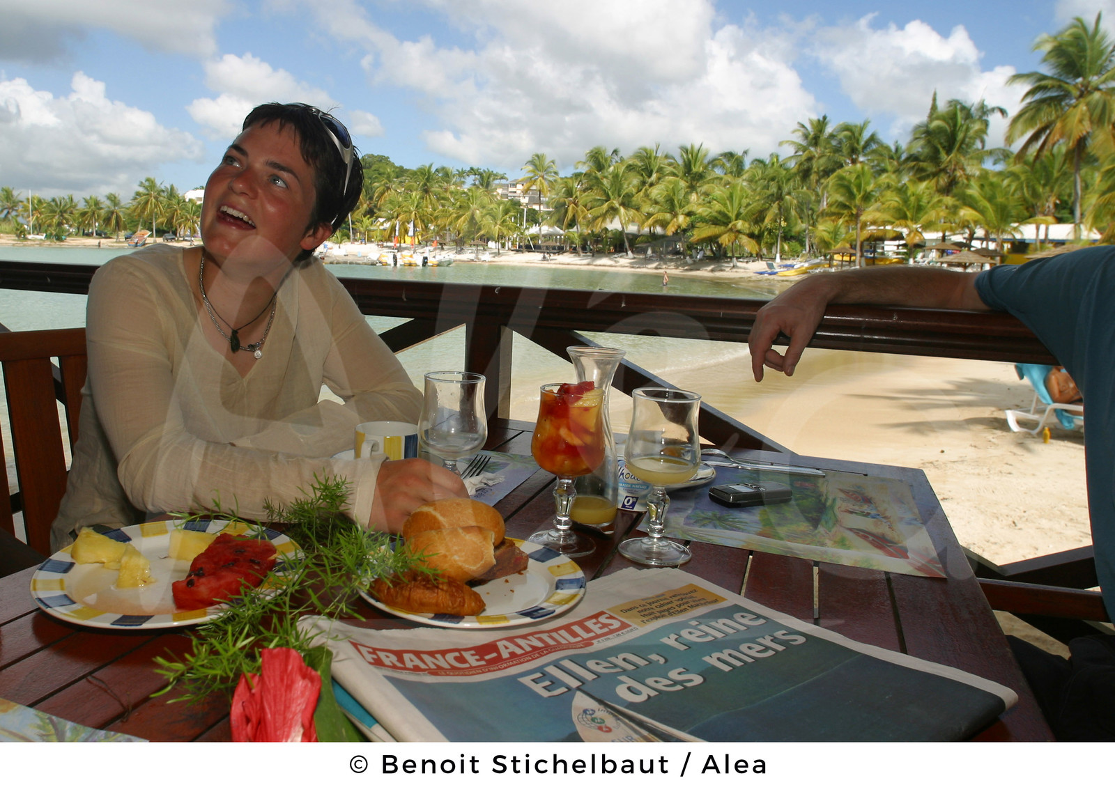 | Description | SAILING - ROUTE DU RHUM 2002 - FINISH POINTE A PITRE (FRA) - GUADELOUPE - MONOHULL 60' IMOCA - 23/11/2002 - ELLEN MACARTHUR EXCLUSIVE FEATURE - PHOTO : BENOIT STICHELBAUT / ALEA.FIRST BREAKFAST AND DEBRIEFING WITH KINGFISHER OFFSHORE CHALLENGES TEAM |