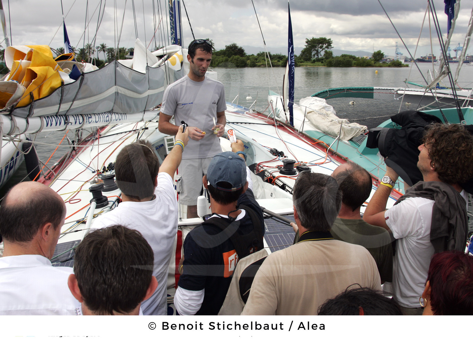 | Description | SAILING - ROUTE DU RHUM LA BANQUE POSTALE 2006 - FINISH POINTE A PITRE (FRA) GUADELOUPE - 11/11/2006.PHOTO : BENOIT STICHELBAUT / ALEA / VIRBAC-PAPREC.IMOCA - BRIT AIR / SKIPPER: ARMEL LE CLEAC'H (FRA) / 4TH / FACING THE MEDIAS - LE CLEACH |