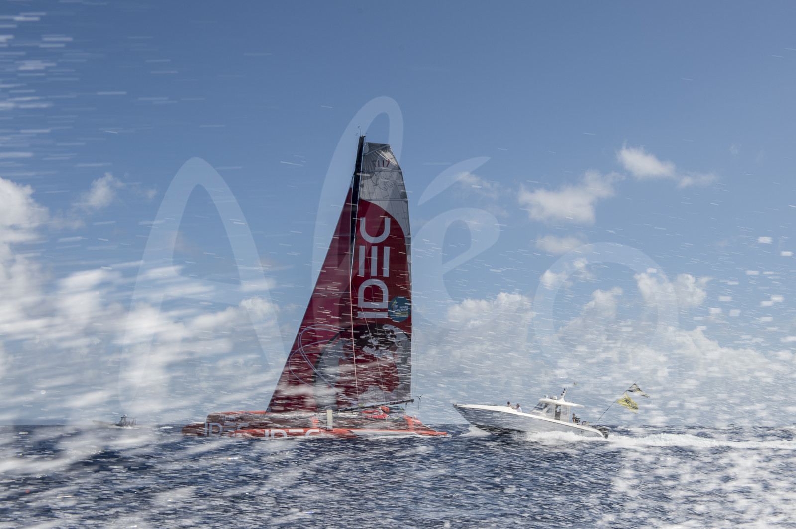 | Description | Francis Joyon, skipper of the maxi trimaran IDEC Sport, Ultime category, finishes 6th (sixth) in the Route du Rhum Destination Guadeloupe, in Pointe ‡ Pitre, Guadeloupe, on november 11, 2014 - Photo Olivier Blanchet / ALEA |
