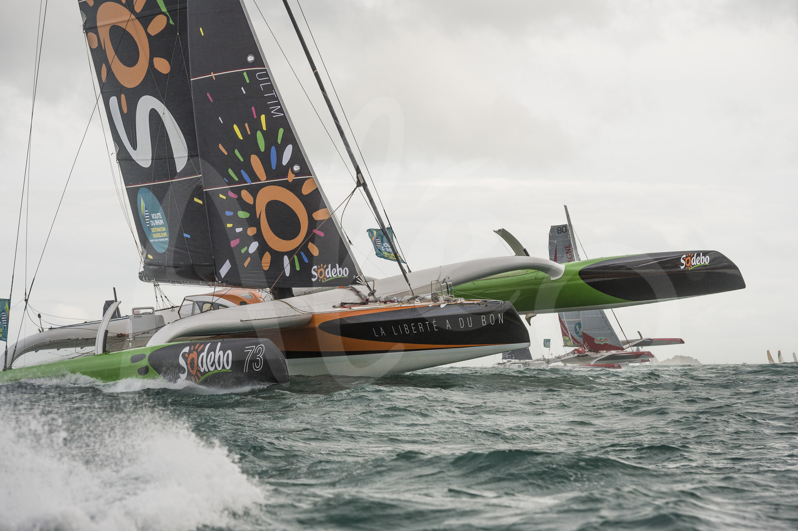 | Description | Thomas Coville, skipper of the Ultime Sodebo in action during the Route du Rhum sailing race start on november 02, 2014 - Photo Vincent Curutchet / ALEA |