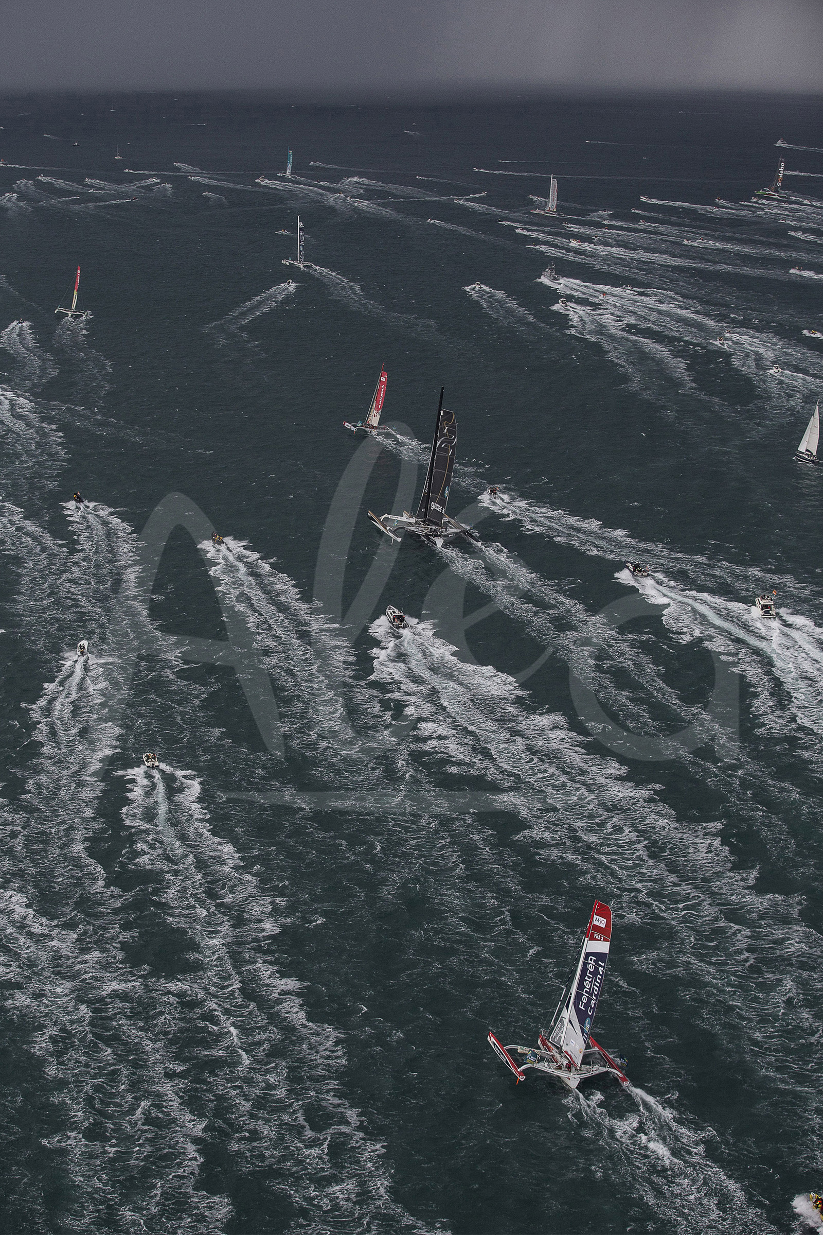 | Description | Multihulls start line with Erwan Le Roux, skipper of the Multi 50 FenetreA-Cardinal during the Route du Rhum sailing race start on november 02, 2014 - Photo Jean Marie Liot / ALEA |