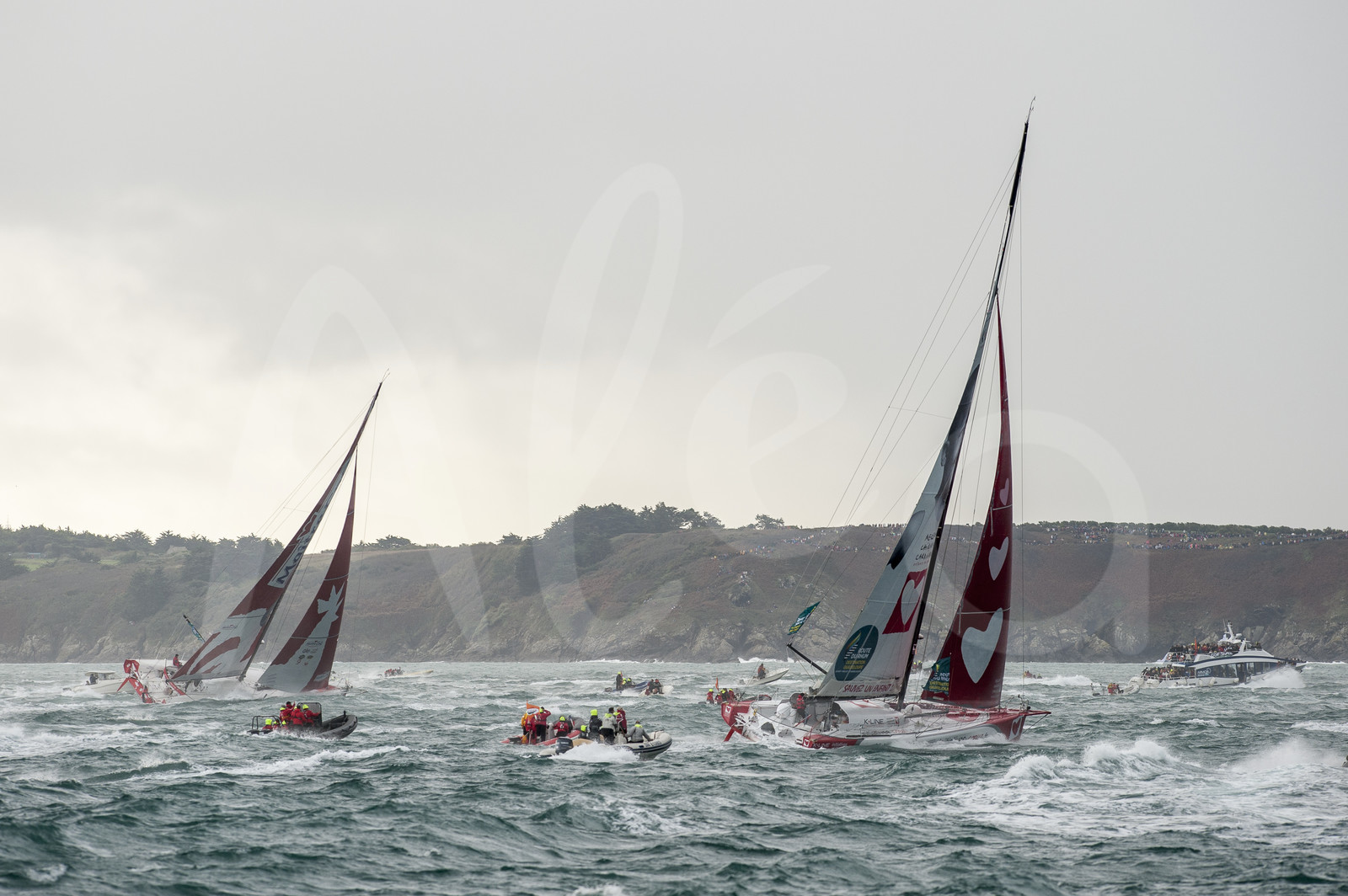 | Description | Tanguy de Lamotte, skipper of the Imoca Initiatives Coeur and Jeremie Beyou, skipper of the Imoca Maitre Coq in action during the Route du Rhum sailing race start on november 02, 2014 - Photo Olivier Blanchet / ALEA |