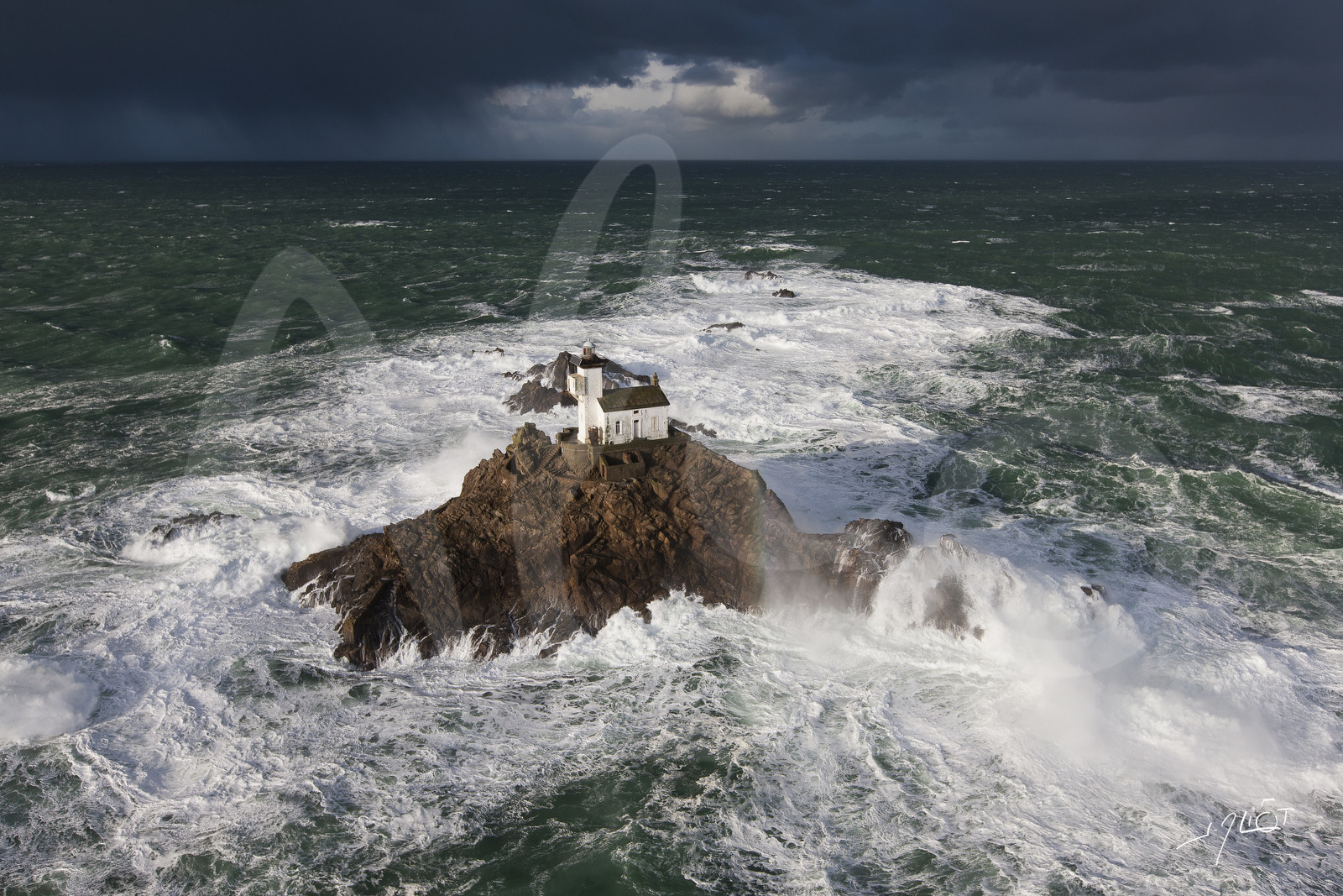 | Description | "Tevennec Hell" © Jean-Marie Liot / Alea - 16 décembre 2011.3JML9542.16 décembre 2011, tempête Joachim. Les vents dépassent les 100 km/h en pointe Bretagne. Il est temps de partir en hélico voir les vagues s'éclater sur les phares. Tous les phares sont maintenant vides de gardiens, sont automatisés et se dégradent à vue d'oeil. Le phare de Tevennec, placé sur un rocher émergé, est un endroit ou l'on devient fou selon la légende. Un trou dans la roche fait siffler le vent en permanence. Les gardiens ne restaient pas longtemps à bord. Et pourtant, le phare de Tevennec accueillit en 1900 un couple de gardiens qui restera 5 ans, la famille Quéméré, et donnera naissance à 3 enfants. |