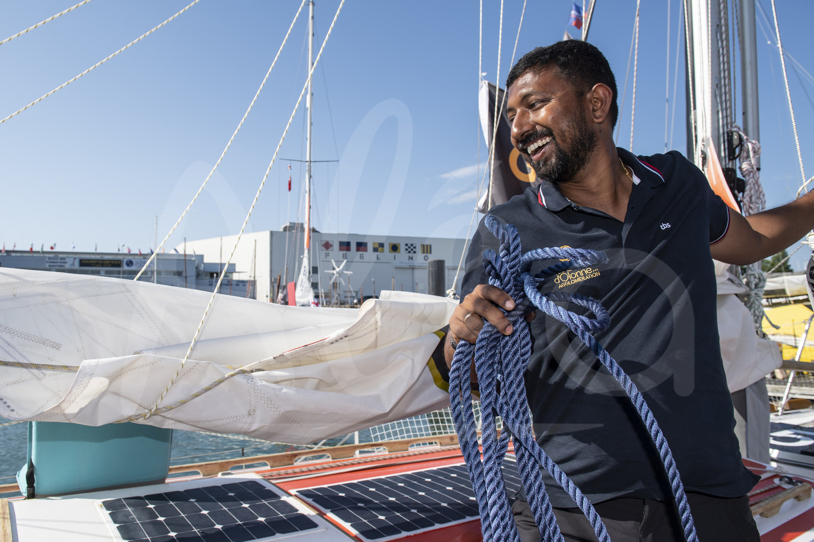 | Description | Golden Globe Race Start - Abhilash Tomy (Inde) - Thuriya, in Les Sables d'Olonne, France, on July 1st, 2018 - Photo Olivier Blanchet / AleA |