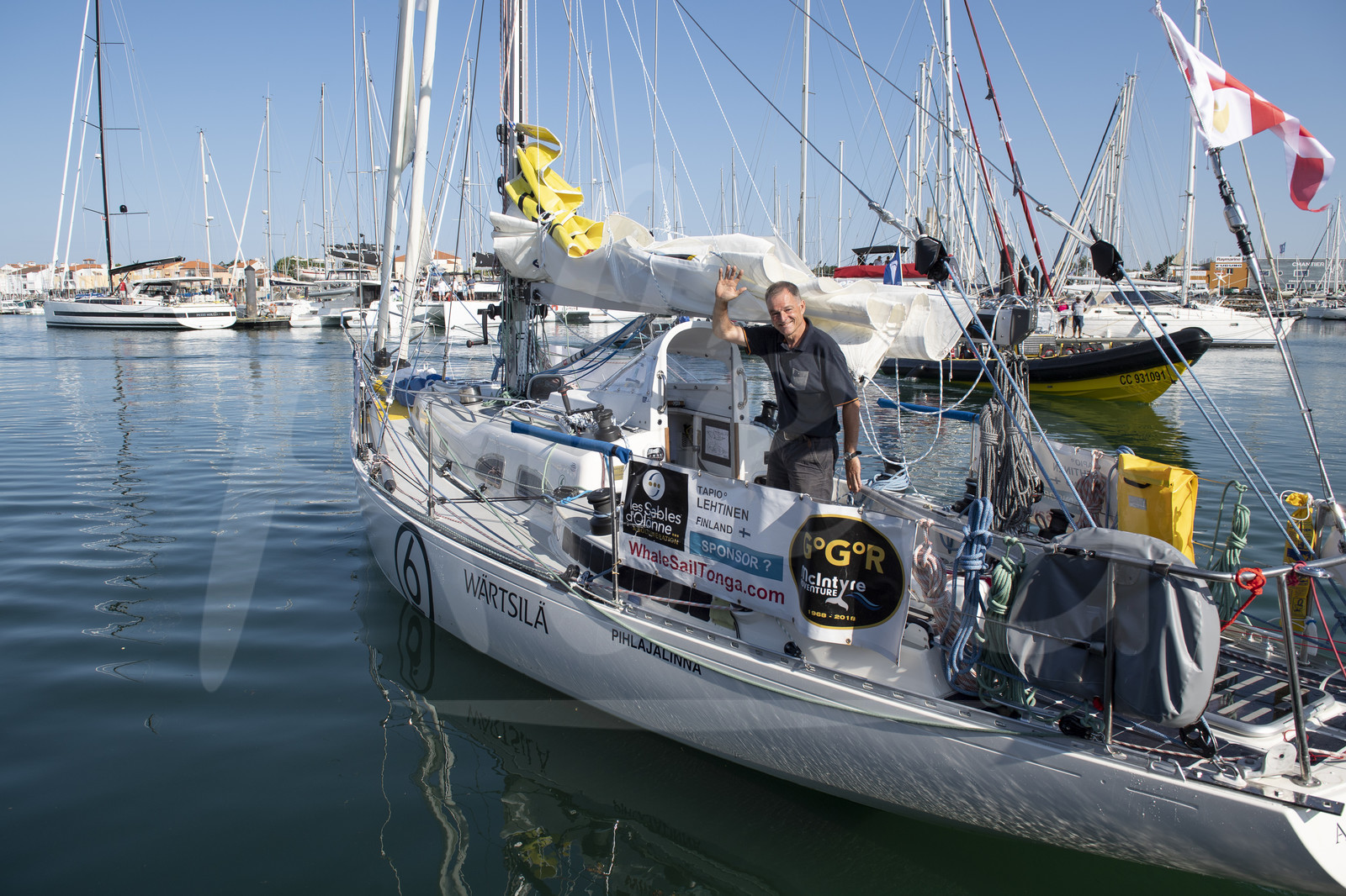 | Description | Golden Globe Race Start - Tapio Lehtinen (Finlande) - Asteria, in Les Sables d'Olonne, France, on July 1st, 2018 - Photo Olivier Blanchet / AleA |