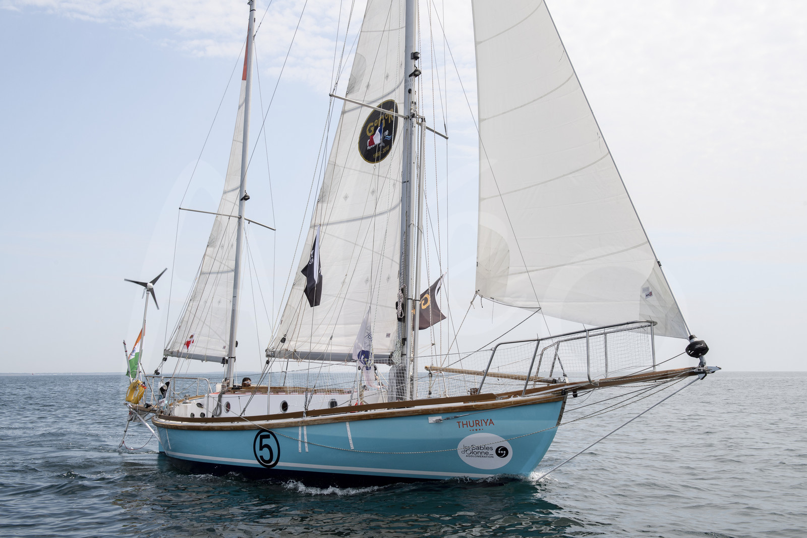| Description | Golden Globe Race Start - Abhilash Tomy (Inde) - Thuriya, in Les Sables d'Olonne, France, on July 1st, 2018 - Photo Olivier Blanchet / AleA |