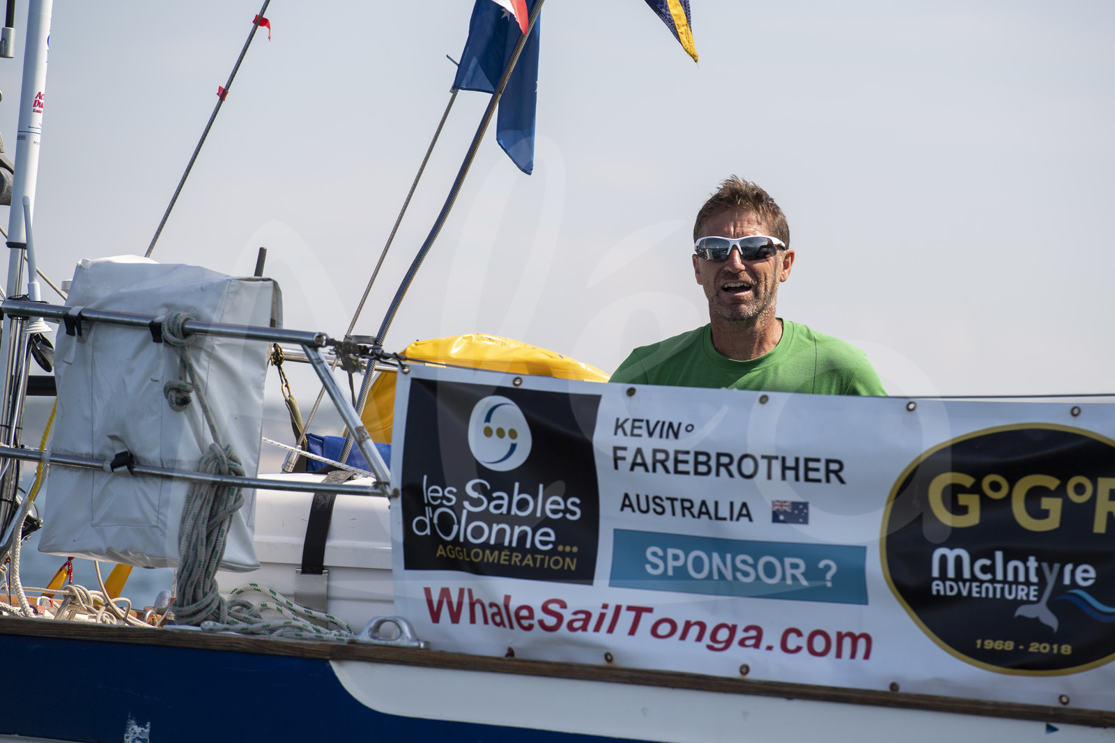 | Description | Golden Globe Race Start - Kevin Farebrother (Australie) - Sagarmatha, in Les Sables d'Olonne, France, on July 1st, 2018 - Photo Olivier Blanchet / AleA |
