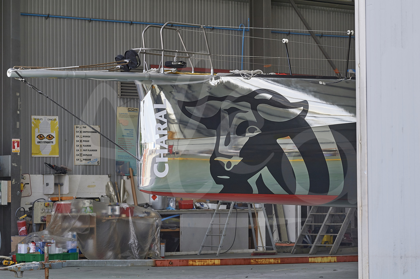 | Description | Reveal of the new IMOCA CHARAL, skipper Jeremie BEYOU, at CDK shipyard in Port La Foret (France), on August 21st, 2018 - Photo Yvan Zedda / Alea |