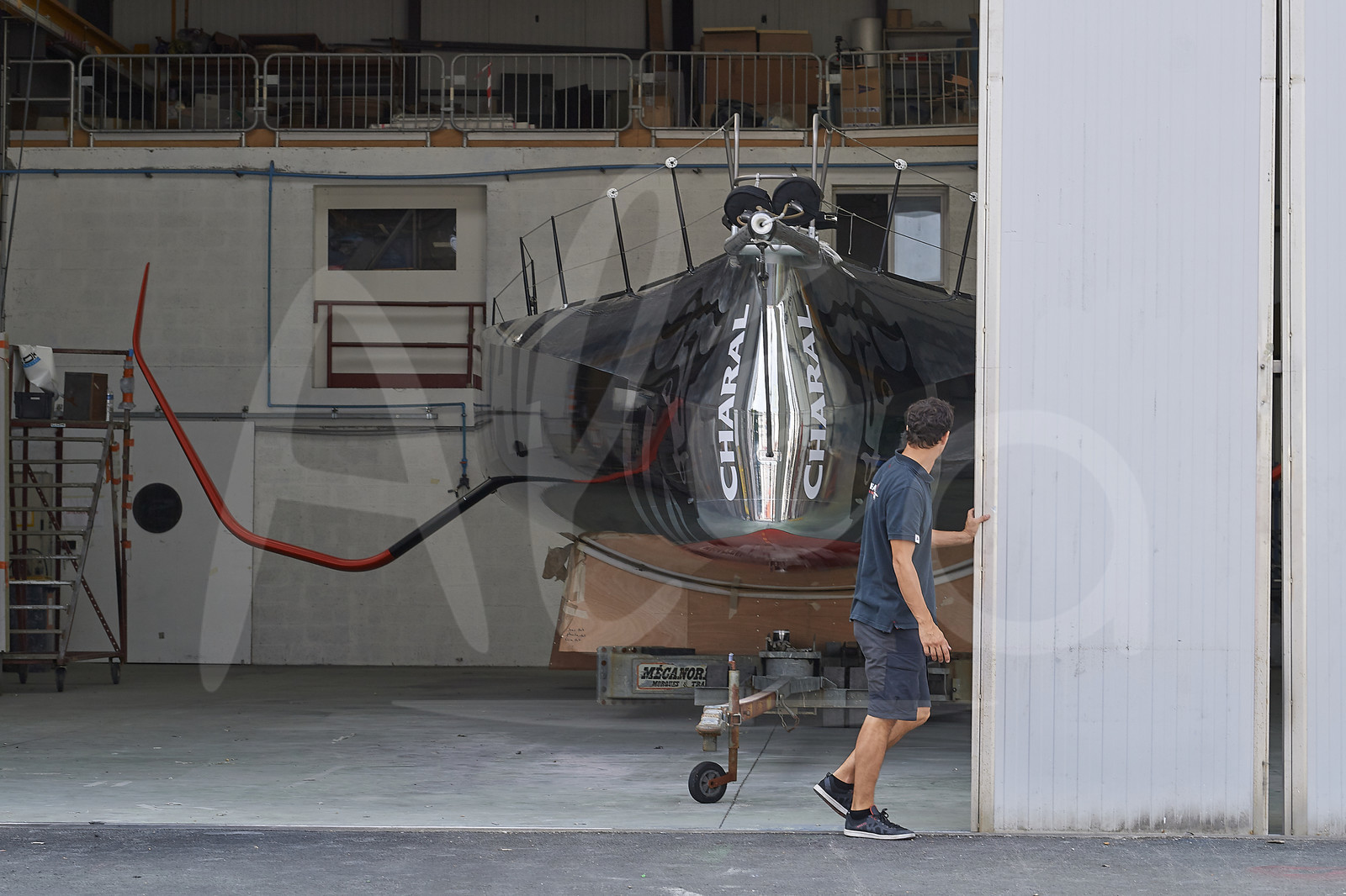 | Description | Reveal of the new IMOCA CHARAL, skipper Jeremie BEYOU, at CDK shipyard in Port La Foret (France), on August 21st, 2018 - Photo Yvan Zedda / Alea |