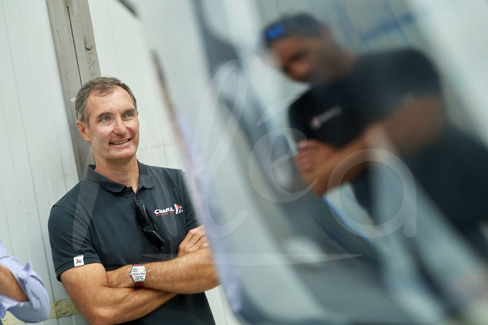 | Description | Reveal of the new IMOCA CHARAL, skipper Jeremie BEYOU, at CDK shipyard in Port La Foret (France), on August 21st, 2018 - Photo Yvan Zedda / Alea |