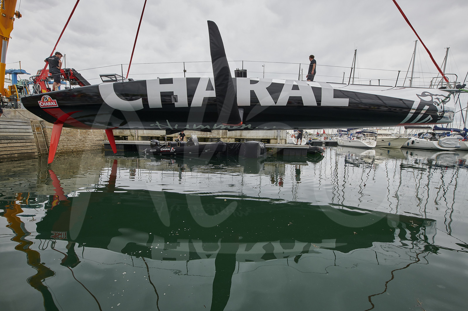 | Description | Reveal of the new IMOCA CHARAL, skipper Jeremie BEYOU, at CDK shipyard in Port La Foret (France), on August 21st, 2018 - Photo Yvan Zedda / Alea |