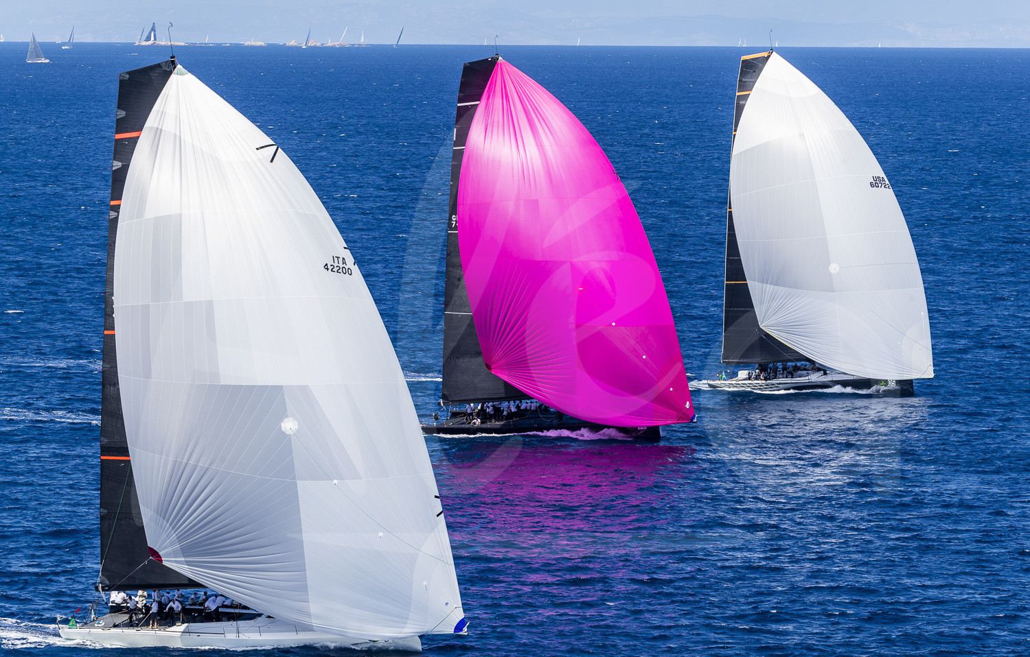 | Description | Graphic aerial illustration of CANNONBALL, Model: Maxi 72, Nation: GBR, Sail n.: ITA 42200R, Lenght: 21,95, Beam: 5,74, Owner / Charterer: Dario Ferrari.JETHOU, Model: IRC 72, Nation: GBR, Sail n.: GBR 74R, Lenght: 21,95, Beam: 5,75, Owner / Charterer: Sir Peter Ogden.PROTEUS, Model: Maxi 72, Nation: MHL, Sail n.: USA 60722, Lenght: 21,95, Beam: 5,76, Owner / Charterer: Artemis Ltd /George Sakelaris, .during the Maxi Yacht Rolex Cup in Porto Cervo, on September 3rd, 2018 - Photo Carlo Borlenghi / Studio Borlenghi / Alea |