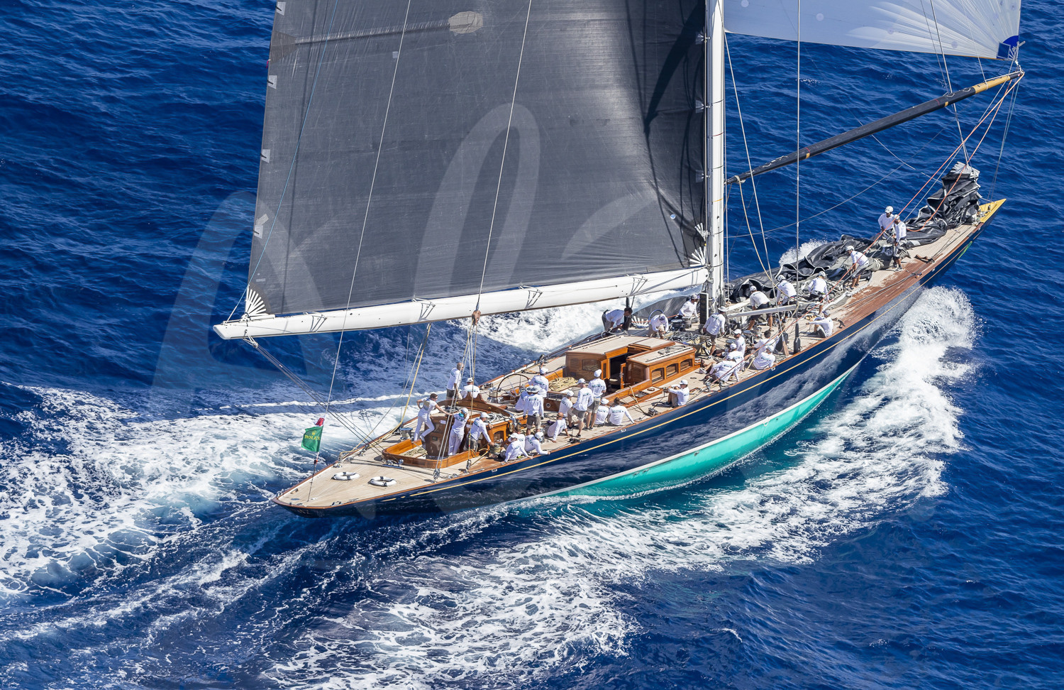 | Description | Graphic aerial illustration of TOPAZ, Model: J Class, Nation: CAY, Sail n.: J 8, Lenght: 42,70, Beam: 6,75, Owner / Charterer: J8 Marine Ltd, during the Maxi Yacht Rolex Cup in Porto Cervo, on September 3rd, 2018 - Photo Carlo Borlenghi / Studio Borlenghi / Alea |