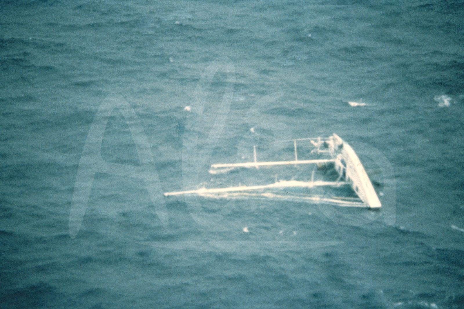 | Description | A picture taken 29 December 1989 shows the capsized Fleury Michon sailed by Philippe Poupon sighted by the search plane 1400 nautical miles from Cape Town, during the first edition of the gruelling round-the-world yacht race Vendee Globe. Philippe Poupon was alive and well and later picked up by a fellow competitor - © archives Rubi / Alea |