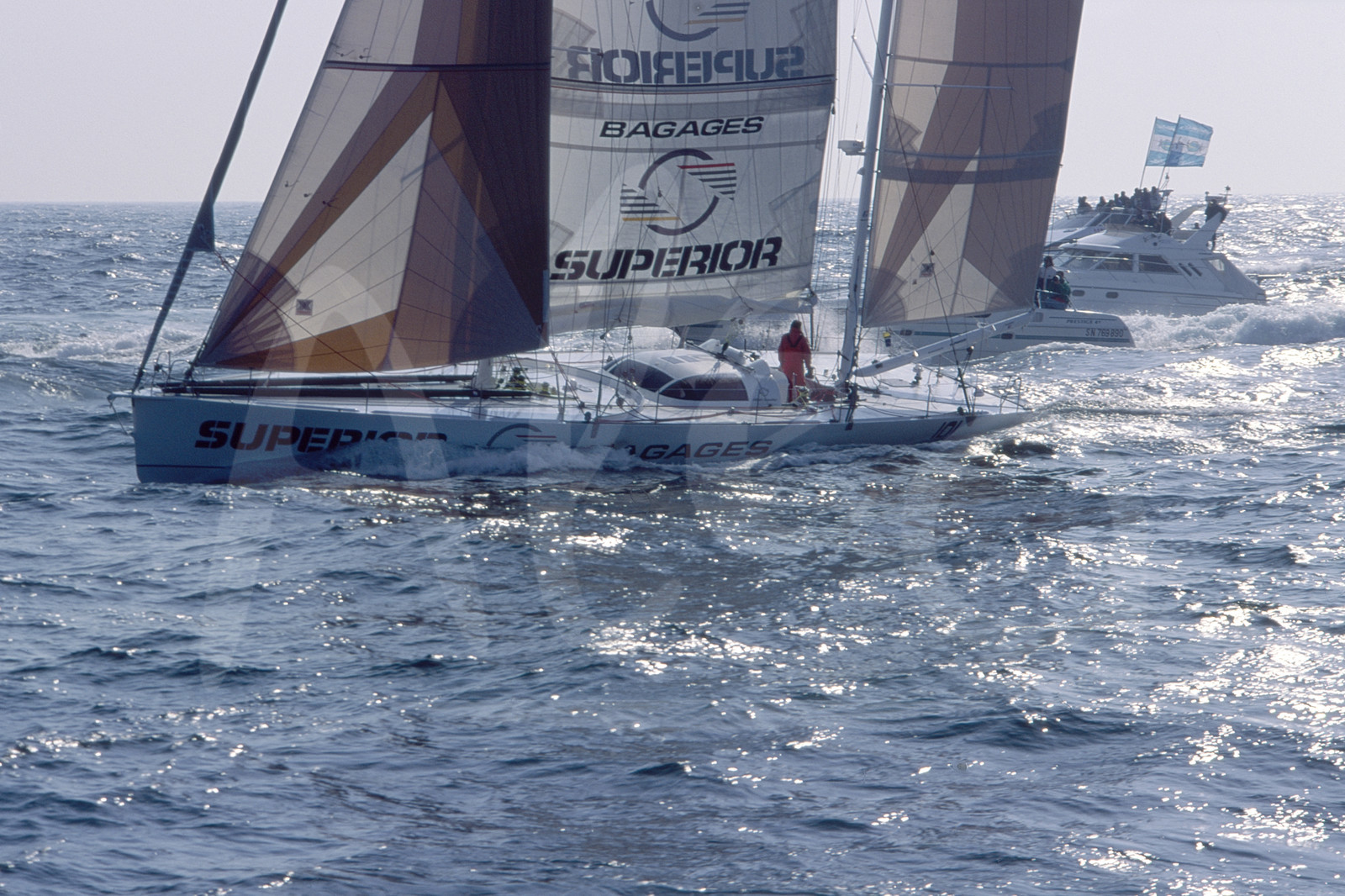 | Description | Winner Alain GAUTIER, Bagages Superior, on the finish line of the round-the-world solo sailing yacht race Vendee Globe in Les Sables d'Olonne, West France, on March 13th, 1993, in 110d 02h 22mn 35s - © Bernard Rubinstein / Alea |
