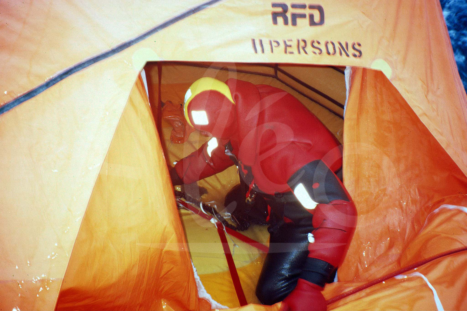 | Description | Rescue of Raphael Dinelli on his life raft, by Pete Goss, Aqua Quorum, during the solo round the world sailing race Vendee Globe, 3rd edition, in the Indian Ocean, on December 26th, 1996 - Photo Pete Goss / ALEA .. |