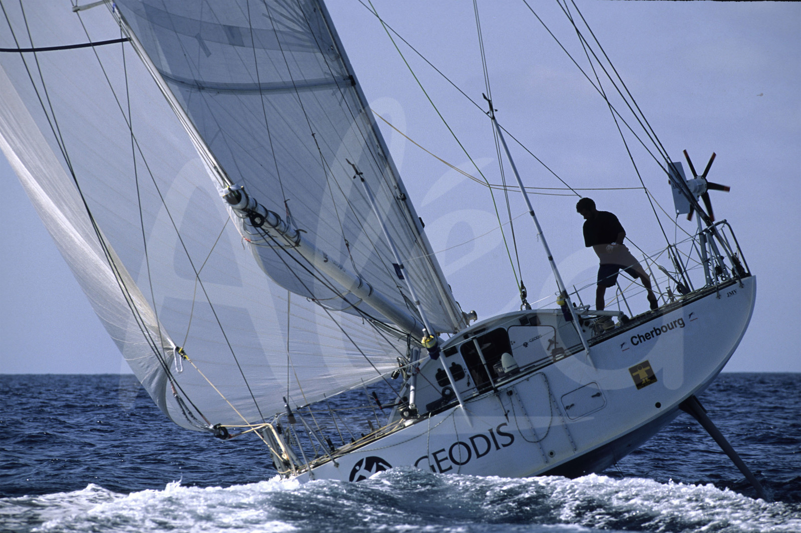 | Description | Action of skipper Christophe Auguin, aboard Geodis, future winner of the solo round the world sailing race Vendee Globe, 3rd edition, off Canarian Islands, on November 11, 1996 - Photo Henri Thibault / ALEA |