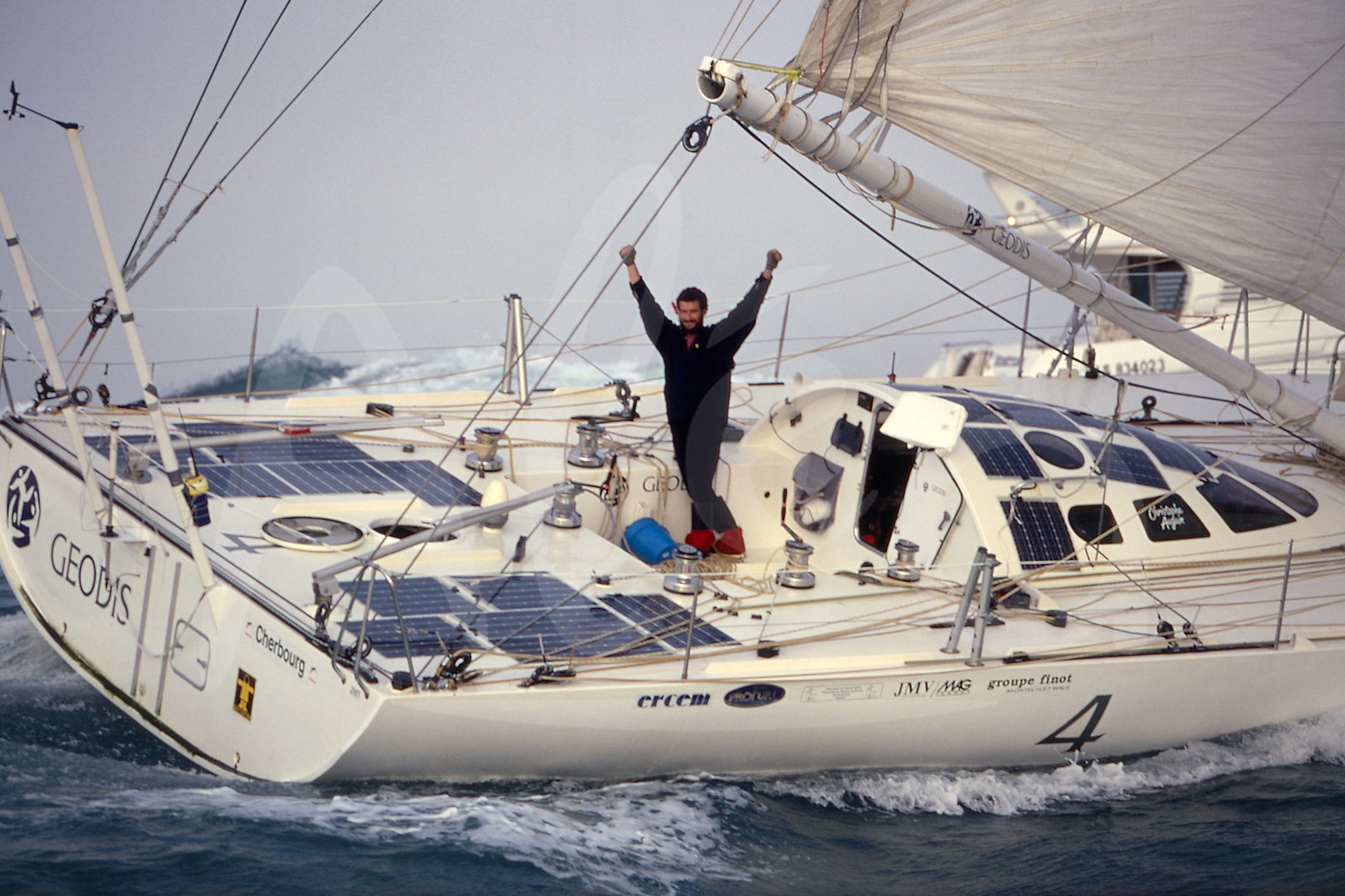 | Description | Arrival of winner Christophe AUGUIN, Geodis, first of the round-the-world solo sailing yacht race Vendee Globe in Les Sables d'Olonne, West France, on February 17th, 1997 - © Bernard Rubinstein / Alea |