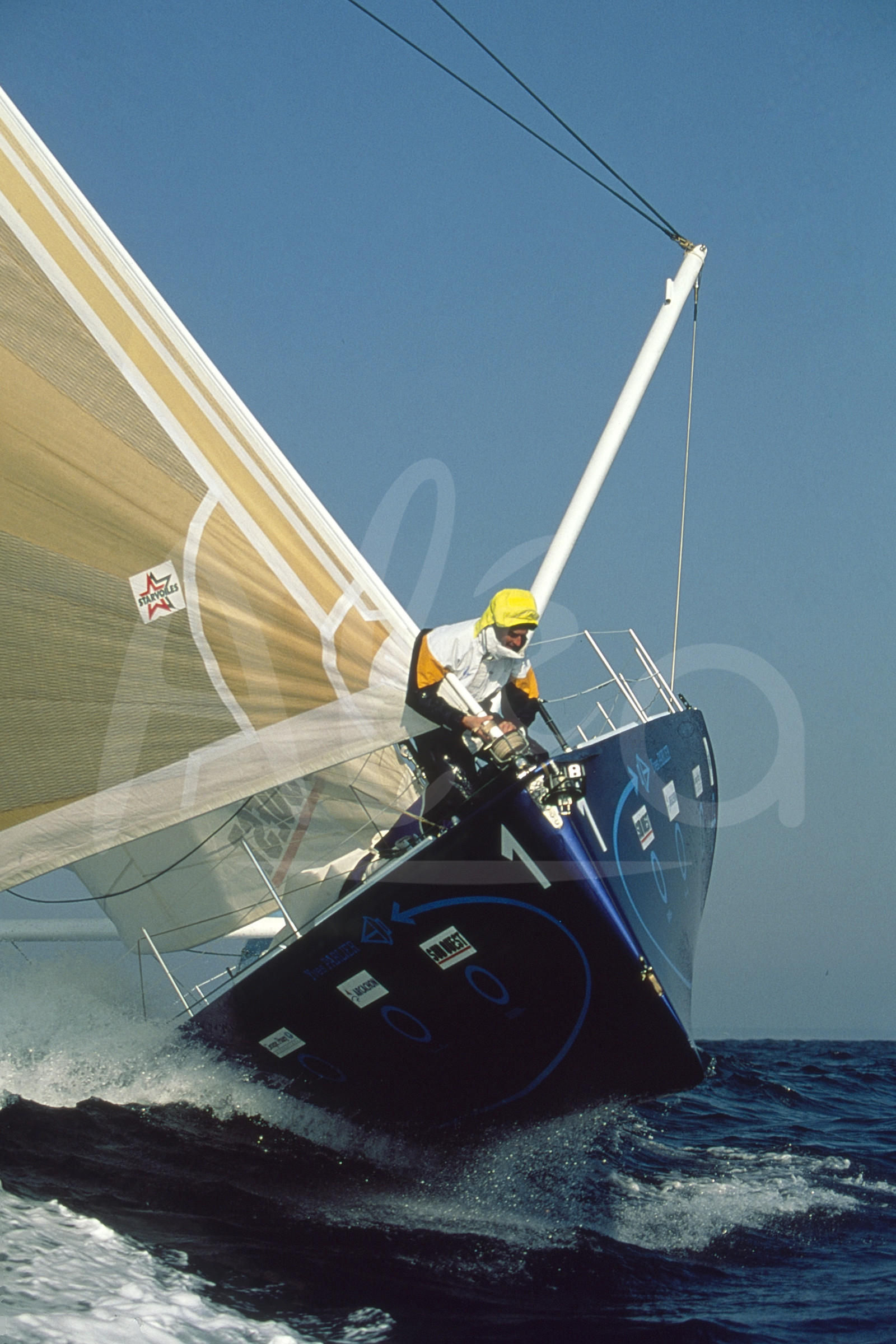| Description | French skipper Yves PARLIER, Aquitaine Innovations, training before start of the sailing round-the-world yacht race Vendee Globe, on October, 1996 © Henri Thibault / Alea |