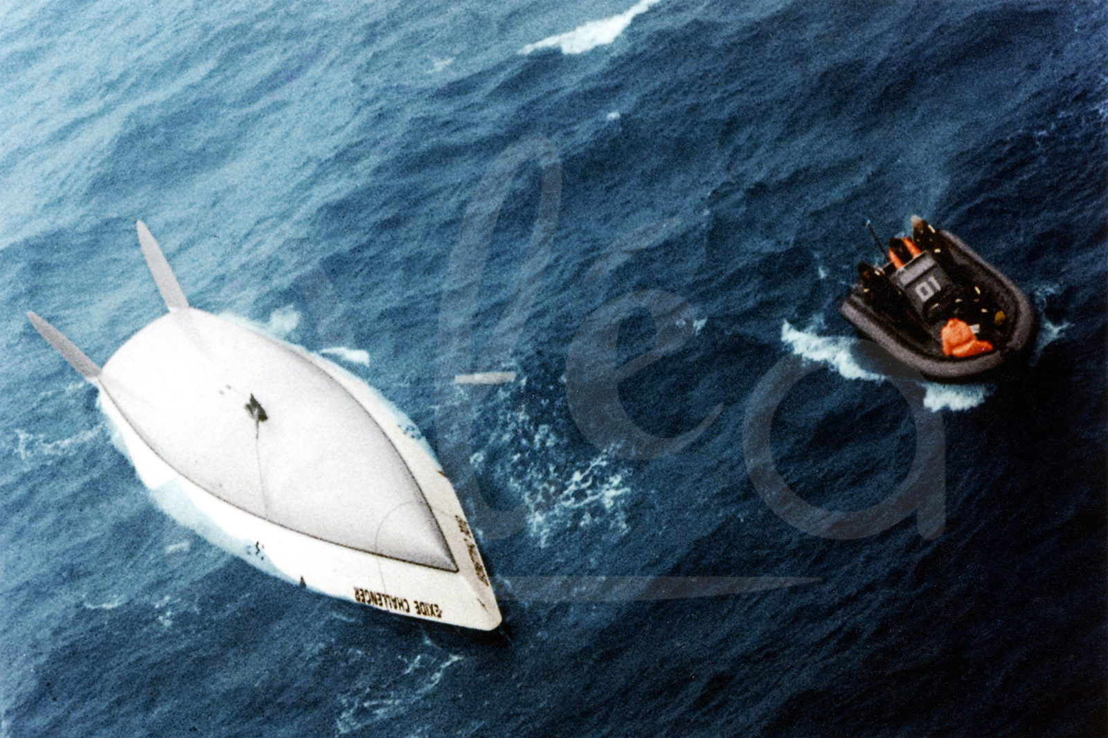 | Description | Rescue by Australian Navy after capsizing for skipper Tony Bullimore, aboard Exide Challenger, during the solo round the world sailing race Vendee Globe, 3rd edition, in the Indian Ocean, on January 9th, 1997 - Photo Pandis / ALEA .. |